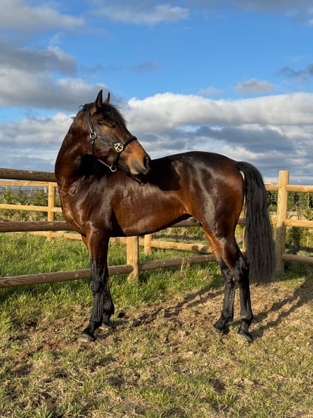 There are now new videos of the ridden horse! It is extremely safe and reliable, and was completely relaxed even on its third ride. This young PRE stallion, born in January 2023, combines a compact, baroque type with expressive movements and a curious, intelligent character. He is already backed and easy to handle, a promising young horse with charisma, quality, and great potential for the future. 📍 Details • PRE – full papers • Stallion • Born: January 2023 • Height: 15.8 hh (expected 16.1–16.2 hh) • X-rays clear • Piroplasmosis negative • Backed and easy to handle • Intelligent, expressive, and full of personality 📍 Location: Spain 📩 Private message for videos and more information 🚚 Worldwide transport can be arranged