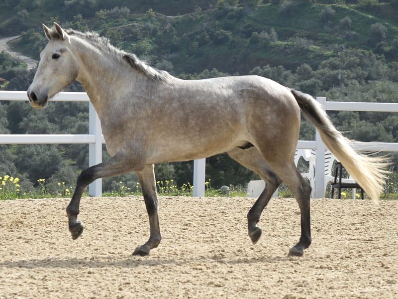 Picasso de CT, PRE gelding born 2023 and currently 160 cm. For sale directly from the breeder. By ALD Luckyluck and Belia II (Lopez Monis / Yeguada Militar) Picasso is a very promising young horse, great mentality and always curious to learn new things. He's a brave horse that never gets scared or jumpy. Picasso has a correct conformation, both body and legs. He's also very handsome to look at. He has good movements, nice suspension and rhythm in the gaits. Picasso is from our own stud farm, he has grown up with other horses in fields with good terrain and a nutritious diet. Always had a good contact with humans which has given him a nice confidence and trust. Located in southern Spain and we help with all the steps in the buying process. Read more about us at www.ct-equestrian.com and www.cthorsesales.com Contact: info@cthorsesales.com