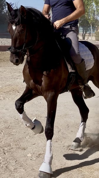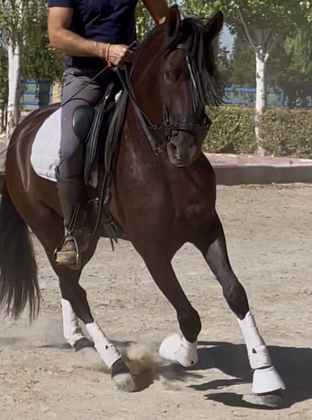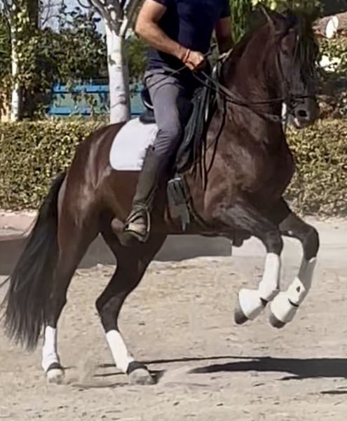 PRE black gelding, born in 2021, with a current height of 1.65m. He has an excellent character, is very sociable and affectionate, stands out for his docile nature and his ease of being ridden by any amateur rider, ideal for a Classical Dressage project. Horse with a super good character, good head, and very trainable. His level of riding allows him to perform lateral movements, leg yields, Spanish walk... which makes him an ideal option for those looking for a versatile horse with potential to compete in both dressage and to enjoy long rides in the countryside, either alone or accompanied by other horses. Complete ANCCE documentation. Great movement and elasticity. Soft in the mouth and responsive to aids. He is a very trainable horse for a rider who needs a horse for competition. Negative for Piroplasmosis.