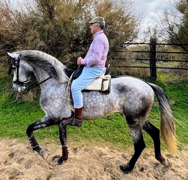 ✨Dieser wirklich wunderschöne PRE Wallach, möchte gern in sein FOR EVER HOME vermittelt werden 🏡 Ein beeindruckender & im modernen Typ stehender jünger Gentlemen, zeichnet sich durch sein sicheres Auftreten und sein vielversprechendes Potenzial aus. Sein Charakter ist bilderbuchmäßig mit viel Adel und das sanftmutige Temperament des spanischen Pferdes. Seine harmonische Oberlinie, sein edler Kopf und seine ausgeprägte und prickelnde Präsenz, machen ihn zu einem ganz besonderen Pferd. Der Schimmel besticht durch seine tolle Fellzeichnung, die ihn zu einem echten Blickfang macht. Trotz seines jungen Alters zeigt er bereits eine vielversprechende Basisausbildung und ist einfach zu reiten. Somit auch für etwas noch schwächere Reiter geeignet. Bislang ist er überwiegend im Gelände unterwegs und da ist er bombensicher. Seine edle Konstitution verleiht ihm eine elegante und zugleich robuste Erscheinung, ideal für Doma Vaquera, Freizeit oder Working. Er ist gut Basis geritten, beherrscht schon einige Seitengänge und Zircensiklektionen wie Spanischen Gruß. Auch ist er sehr gelehrig und arbeitet sehr gern mit. Dieser PRE Wallach ist ein echtes Schmuckstück für jeden Liebhaber spanischer Pferde, der Wert auf Qualität, Charakter und Ausstrahlung legt. Bei Interesse freuen wir uns auf Ihre Kontaktaufnahme ( bitte mit WhatsApp Nummer) , um weitere Details zu besprechen und eventuell auch einen Besichtigungstermin zu vereinbaren. Wir arrangieren auch gern den Transport für Euch 🚛✈️ Wir haben eine große Auswahl an verschiedenen Pferden vom Fohlen bis zum Gran Prix Pferd.