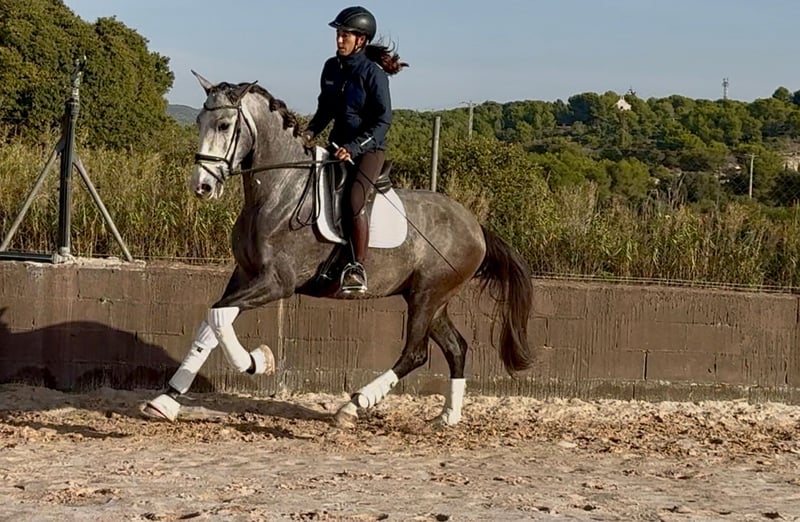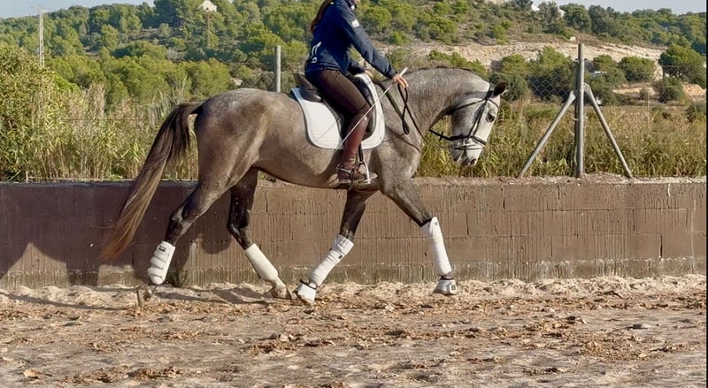 Beautiful horse for sale! We are offering a stunning gelding born in 2021. With a grey coat and standing at 16.1 hh, he is ideal for riders seeking a well-sized and impressive horse. Specializing in dressage, this horse has an excellent attitude for work and training in this discipline. Perfect for riders looking for a reliable partner with potential to develop further in dressage. Feel free to contact us for more information and to arrange a visit.