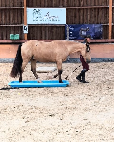 🐴 OLIVIO ANGOSTURA, superb 4-year-old PRE isabelle gelding - intelligent, connected and well-born leisure horse. We present OLIVIO ANGOSTURA, a splendid 4-year-old Purebred Spanish (PRE) gelding with a golden isabella coat as rare as it is bewitching. Bred by Yeguada Pagerols, OLIVIO has an exemplary temperament, great intelligence and a harmonious build, combining poise, solidity and natural elegance. 💫 Temperament and aptitudes : Quick and natural learner: OLIVIO understands quickly and is always looking to do well. Sensitive, connected and gentle: he perceives with finesse, without overreacting. Very good student: calm, respectful, attentive to people. Slow, composed gaits: ideal for free-riding, equifeel, trail rides or intuitive riding. The perfect partner for a caring rider looking for a deep, authentic bond with his horse. 🎨 An isabelle coat full of charm Its luminous isabelle coat, rare among PREs, is an instant eye-catcher. A real visual pearl, it highlights his noble head carriage, gentle eye and composed gait. OLIVIO is a horse that catches the light and the eye. 🧬 Prestigious origins OLIVIO is the son of NATIVO DE BADAL and ZAHARA PG, two renowned sires. He is descended from the legendary REMACHE XIII, calificado (qualified sire) stallion of the famous Yeguada Torreluna, Show Champion and Functionality Champion at FEGAR 2008, renowned for transmitting suppleness, charisma and balance. Through his maternal line, he is also a great-grandson of MARISCAL DE TORRE, the famous sire of the Yeguada Valle Miñor, known for his isabella coat and his beautiful, functional offspring. OLIVIO carries the prestigious lines of the Yeguada Militar, guaranteeing solidity, sporting ability and a stable mind, as well as Escalera blood, prized for its nobility, racy build and ease under saddle. A pedigree that makes him a horse that is both reliable, distinguished and naturally gifted for the man-horse relationship. 📍 Visible at Caumont (09160) - Ariège, Occitanie OLIVIO is available for trial in a natural, peaceful setting, conducive to a gentle, authentic encounter. --- ALEGRIA - Find the horse of your dreams 🐎 and create a unique relationship based on trust and complicity 🤍. At Alegria, we know that buying a horse is much more than just a transaction. It's about finding a life partner with whom you will build a solid and fulfilling relationship. 🌟 We offer you expert support every step of the way, so that you can make an informed choice and start this adventure with complete peace of mind. Why choose Alegria? Personalised support to guide you in your choice. We help you find the horse that matches your personality, expectations and skills, so that the relationship that develops with him is fluid and natural. ✨ Our team of experts will advise you, guide you and support you every step of the way so that you make an informed choice, without rushing. Horses bred in an environment conducive to their well-being. Our horses are reared in exceptional conditions, where they benefit from gentle, respectful training 🕊️, based on our exclusive "Relation de Complicité" method. Each horse is prepared to be a reliable, responsive and balanced partner, ready to build a relationship of trust with you. Quality care to ensure optimum health. The well-being of our horses is paramount. 🩺 They are regularly monitored by animal health experts: vets, osteopaths, farriers and dentists. This medical monitoring guarantees that your horse will be in tip-top shape, ready to start this new relationship with you under the best possible conditions. Transparent monitoring thanks to progress sheets. Each horse has a detailed progress sheet 📋 so you can find out its exact level, strengths and character. This transparency gives you all the keys you need to choose the horse that will meet your expectations and the relationship you want to build with him. Ongoing support to ensure your relationship is a success. At Alegria, we believe that a lasting relationship cannot be improvised. That's why we stay by your side after the purchase 🤝 with a personalised follow-up to help you build a real bond with your horse. Thanks to our face-to-face and distance learning courses, you'll learn to understand your horse better and strengthen the foundations of your relationship. Testimonials from satisfied customers. We have helped hundreds of riders with their projects. 🌟 100% of our customers are satisfied with the support and the relationship they have developed with their horse. Their testimonials are the best proof of the quality of our work and the success of the relationships we foster. Find the horse that's right for you. Discover our selection of exceptional horses 🐴 and start imagining the relationship you're going to create with him. Consult the progress sheets and let our team of experts guide you to find the horse that meets your expectations. 🌐 Discover our selection of horses on www.alegriacomplicite.com and start building the relationship of your dreams. Alegria - Find the horse that suits you 🐎 and create a relationship based on trust and complicity 🤍.