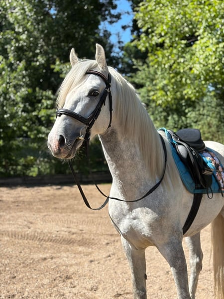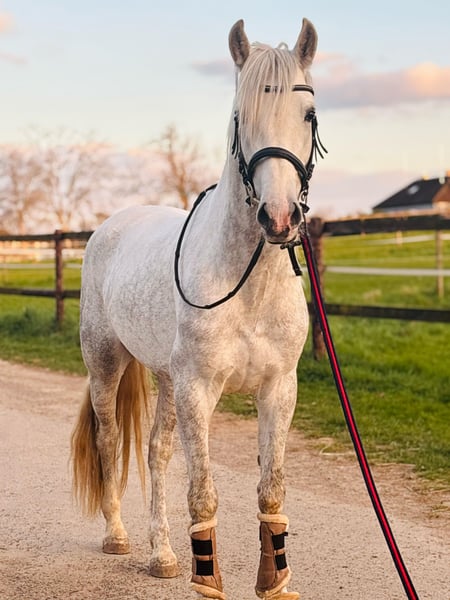 Zum Verkauf steht der 5-jährige PRE-Wallach „Rabicano“. Der schicke Apfelschimmel stammt direkt aus Spanien, ist kerngesund und lebt seit über einem Jahr in Deutschland. Rabicano ist bestens erzogen und zeigt sich im Umgang stets brav. Aufgrund seines Wesens und seiner Größe eignet er sich ideal für erfahrene Reiter, ambitionierte Einsteiger sowie besonders auch für Kinder. Er ist auf allen vier Hufen beschlagen, regelmäßig entwurmt und zahnärztlich kontrolliert. Ein Kennenlernen und Probereiten ist nach vorheriger Terminvereinbarung jederzeit möglich.