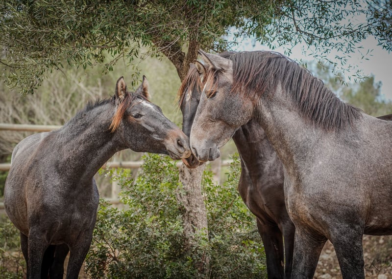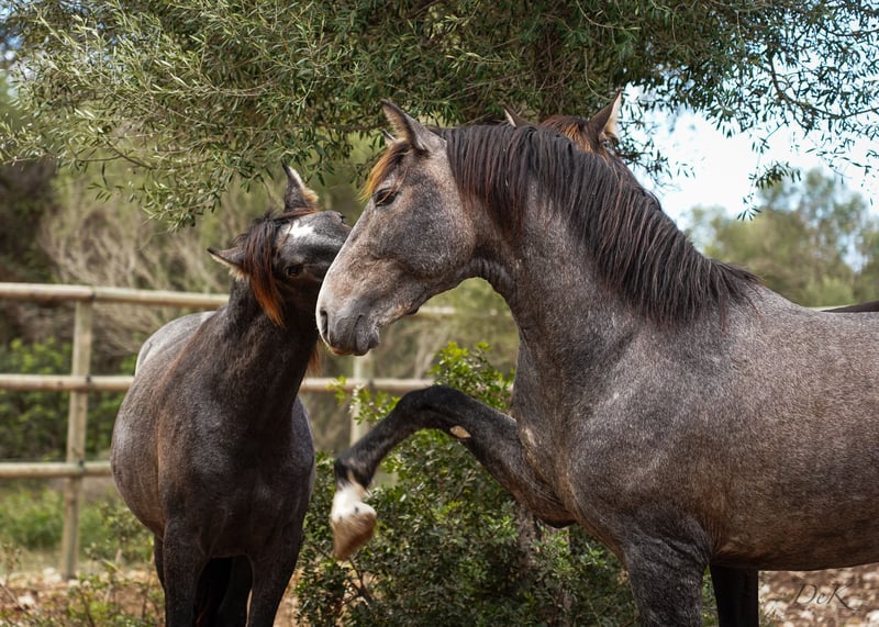 An exceptional PRE stallion with lots of potential and charm is for sale. Born in 2021, this young stallion is already showing promising signs of a successful career in dressage. With a current height of 1.62 cm (we estimate a final height of 1.66 m), he will be the perfect dressage partner. His harmonious conformation, paired with strong hindquarters and impressive shoulder freedom, gives him outstanding quality of movement. This stallion not only has the talent, but also the character to go far. He is an intelligent, inquisitive horse, eager to learn and always eager to please. He is always calm and fearless, whether in daily handling or in new situations. This PRE stallion is a real diamond in the rough, waiting for his new owner to make him shine. If you are looking for a talented dressage partner with a strong character, this young stallion could be just the right horse for you. Caci is lunged and knows Schmid, TA - daily handling. He grew up in a small herd and also knows the paddock box. Please contact us for more information and to arrange a viewing. We look forward to introducing you to this exceptional stallion. We will be happy to help you with transportation, castration if necessary and look forward to hearing from you. welcome@es-ravella.com +491733630077 +334634314244 www.es-ravella.com