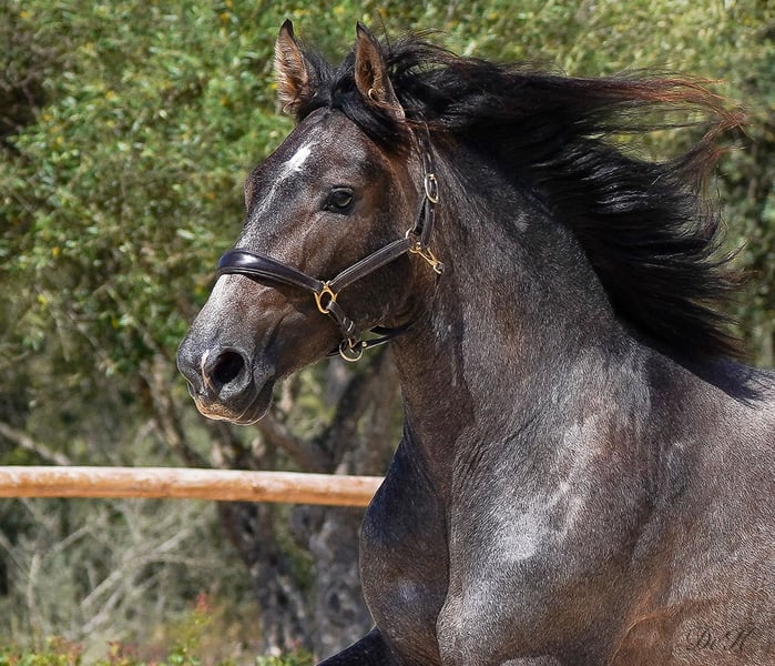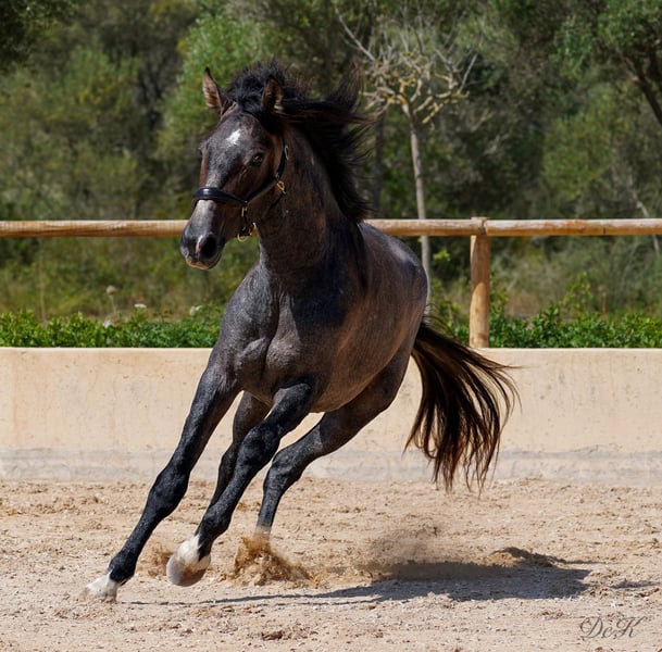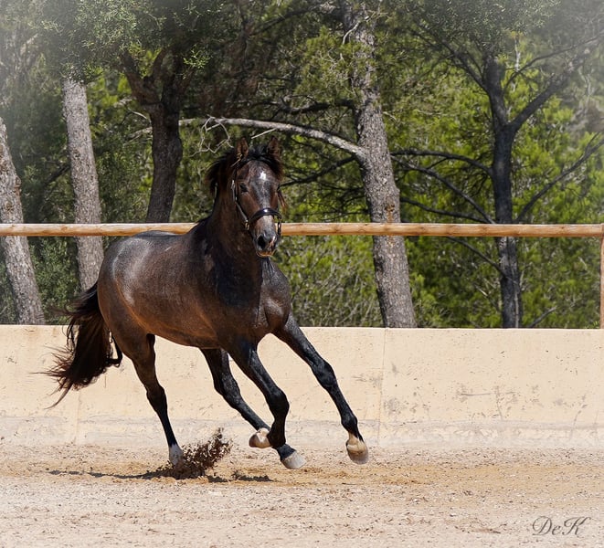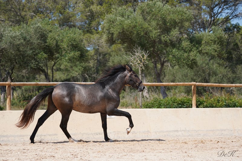 Update: Cacique showed us again that he has it all at the Belearic Championships he was second with incredible 71,8 and a expectation for the future of a 7,2 - we always have to remind us that this youngster is only under the saddle for a very short period ---- Beginning of March and so he has done an amazing job. A true juwel!!! Cacique ist geritten und hat sein erstes Turnier der 4-jährigen Reitpferde bestritten und mit einer 73,.80 % Note abgeschnitten und gewonnen - wir sind sehr stolz auf ihn. Er war dabei super brav und lässig, dennoch sind wir überzeugt, dass er noch mehr Potenzial hat als er uns auf dem ersten Turnier gezeigt hat. Mit seinen herausragenden Grundgangarten und seinem super coolen Charakter hat er die Richter überzeugen können. Cacique dés RAVELLA stammt ab von dem wundervollen Rapphengst POETA de SUSAETA! ...Cacique hat viel Potenzial von seinem Vater geerbt. Sein Schritt und Galopp sind herausragend! Auch seine Rittigkeit ist ein Highlight. Poeta de Susaeta Sein Vater Cacique IX ist ein Supreme-Elite-Hengst. Er ist der einzige schwarz gefärbte Hengst, der alle 5 möglichen Abzeichen für einen reinrassigen spanischen Hengst hat. Sein Großvater väterlicherseits, Ermitano III, war der erste Hengst, der zur Elite gekrönt wurde. Fer Agora gezogen von Yeguada Ferrero, die den derzeitigen und 4 maligen Weltmeister Hengst Fer Bonachon gezüchtet haben, hat ebenfalls kräftig aufzufahren. Vater Mañoso Ii und Muttervater Judio VII sind absolute Top Vererber. Zum Verkauf steht hier ein außergewöhnlicher PRE Wallach mit viel Potenzial und Charme. Geboren im Jahr 2021, zeigt dieser junge Wallach bereits jetzt vielversprechende Anzeichen für eine erfolgreiche Karriere in der Dressur. Mit einem jetzigen Stockmaß von 1,65 cm (Endmaß schätzten wir 1,66 m) wird er der perfekte Dressurpartner. Sein harmonischer Körperbau, gepaart mit einer starken Hinterhand und einer beeindruckenden Schulterfreiheit, ermöglicht ihm eine hervorragende Bewegungsqualität. Cacique (Häuptling) hat nicht nur das Talent, sondern auch den Charakter, um weit zu kommen. Er ist ein intelligentes, neugieriges und lernwilliges Pferd, das stets bemüht ist zu gefallen. Er zeigt sich stets gelassen und unerschrocken, egal ob im täglichen Umgang oder in neuen Situationen. Er ist ein echter Rohdiamant, der darauf wartet, von seinem neuen Besitzer zum Strahlen gebracht zu werden. Wenn Sie auf der Suche nach einem talentierten und charakterstarken Dressurpartner sind, könnte dieser junge PRE genau das richtige Pferd für Sie sein. Caci ist geritten, brav and der Longe, beim Schmid und TA und natürlich im täglichen Umgang. Er wuchs im kleinen Herdenverband auf und kennt die Paddockbox. Bitte kontaktieren Sie uns für weitere Informationen und um einen Besichtigungstermin zu vereinbaren. Wir freuen uns darauf, Ihnen diesen außergewöhnlichen Wallach vorzustellen. Wir haben bereits Erfahrung mit dem Weltweiten Transport der Pferde, Wir helfen Ihnen gerne! Bitte zögern Sie nicht und schreiben Sie uns einfach an! welcome@es-ravella.com +491733630077 +334634314244 www.es-ravella.com