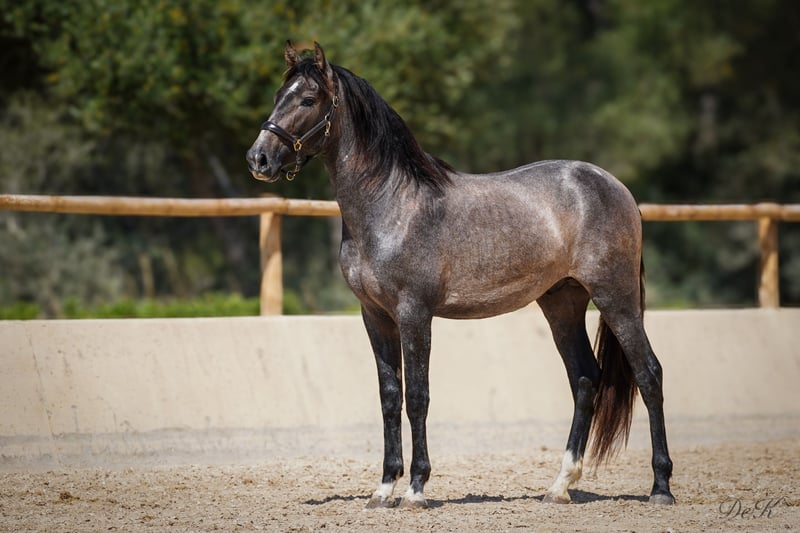 Wyjątkowy ogier PRE z dużym potencjałem i urokiem jest na sprzedaż. Urodzony w 2021 roku, ten młody ogier już wykazuje obiecujące oznaki udanej kariery w ujeżdżeniu. Przy obecnym wzroście 1,62 cm (szacujemy, że docelowo osiągnie 1,66 m), będzie idealnym partnerem ujeżdżeniowym. Jego harmonijna budowa, w połączeniu z mocnym zadem i imponującą swobodą ramion, zapewnia mu wyjątkową jakość ruchu. Ogier ten ma nie tylko talent, ale i charakter, który pozwoli mu zajść daleko. Jest inteligentnym, ciekawskim koniem, chętnym do nauki i zawsze chętnym do zadowolenia. Jest zawsze spokojny i nieustraszony, zarówno w codziennej obsłudze, jak i w nowych sytuacjach. Ten ogier PRE to prawdziwy nieoszlifowany diament, czekający na nowego właściciela, który sprawi, że zabłyśnie. Jeśli szukasz utalentowanego partnera ujeżdżeniowego z silnym charakterem, ten młody ogier może być właśnie dla Ciebie. Caci jest lonżowany i zna Schmid, TA - codzienną obsługę. Dorastał w małym stadzie i zna również boks padokowy. Prosimy o kontakt, aby uzyskać więcej informacji i umówić się na oglądanie. Z niecierpliwością czekamy, aby przedstawić Państwu tego wyjątkowego ogiera. Chętnie pomożemy w transporcie, kastracji, jeśli to konieczne i czekamy na kontakt. welcome@es-ravella.com +491733630077 +334634314244 www.es-ravella.com