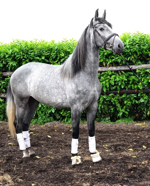 Ich verkaufe einen wunderschönen P.R.E. Wallach 166 cm groß und 5 Jahre alt. Er ist super bequem zu sitzen und auch im Umgang ein richtiger Schatz. Er ist gesund und hat keine Unarten. Dressurmäßig ist er sehr gut ausgebildet und es macht sehr viel Freude ihn zu reiten. Das Springen bereitet ihm auch sehr viel Freude und er springt auch einen kleinen Parcours. Zudem geht er auch allein und in der Gruppe ins Gelände. Er ist verladefromm und artig beim Schmied. Trotzdem ist er typisch Spanier ein sensibles Pferd und mag es nicht grob behandelt zu werden. Mit anderen Pferden ist er absolut unkompliziert und eher rangniedriger. Er hat volle Papiere mit Abstammung. Er ist schon als Jungpferd gekommen und kennt die deutschen Winter und hat auch Winterfell usw. Er hat keine mir bekannten Allergien und frisst Hafer, Heu, Heulage, Mash, Mineral usw. und steht auf Stroh. Normalerweise ist er barhuf und hat gesunde Hufe allerdings hat er im Sommer manchmal Eisen drauf, da wir sehr viel ins Gelände reiten.