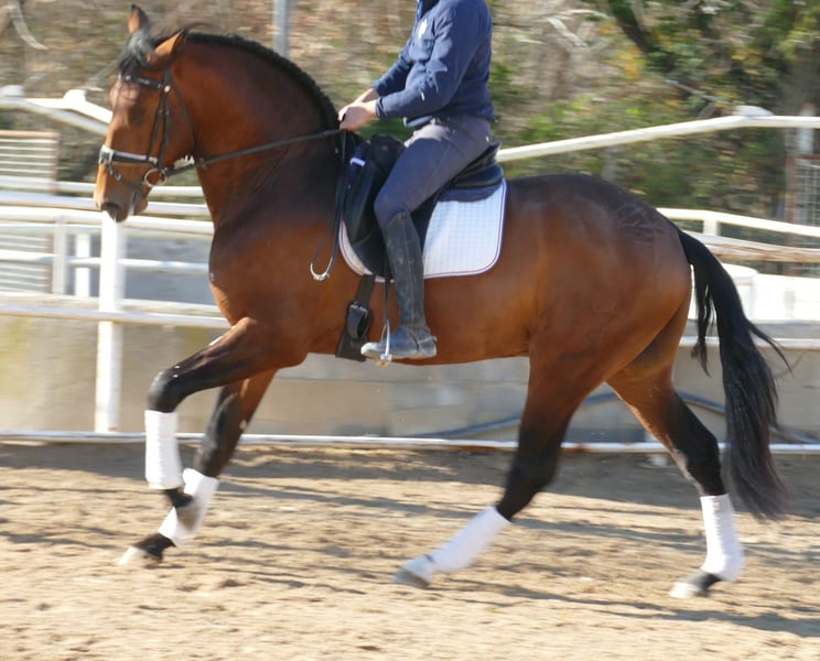 Gorgeous PRE gelding. Dressage prospect. Good canter, excellent walk. Before all, this beautiful horse has a sweet character. He hacks out, no spook. He is a sport horse and in spite of his big size, he has all the qualities for collection that we like in smaller ones. Clean xrays. Pirofree.