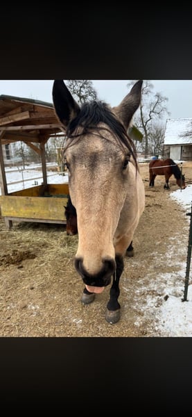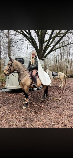 For Sale: PRE Gelding – Looking for a Leisure Partner! Up for sale is a beautiful PRE cross gelding, born in 2021. He impresses with his elegant buckskin coat and an impressive height of 17.5 hh. This horse is ideally suited for recreational riding and delights with his friendly nature and pleasant demeanor. I (the owner, a breeder) backed him in October, during which he proved to be very well-behaved, and in December, he participated in a riding event. We also visited a kindergarten as Santa Claus. He never spooks when other horses get startled. The gelding is healthy, regularly vaccinated, and pain-free. He is well-trained, reliable in handling, and suitable for both experienced riders and ambitious leisure riders seeking a dependable companion. If you are interested or need more information, please feel free to contact me. Viewing and trial riding are possible by arrangement. I ask for €30 for a ride. I look forward to hearing from you!