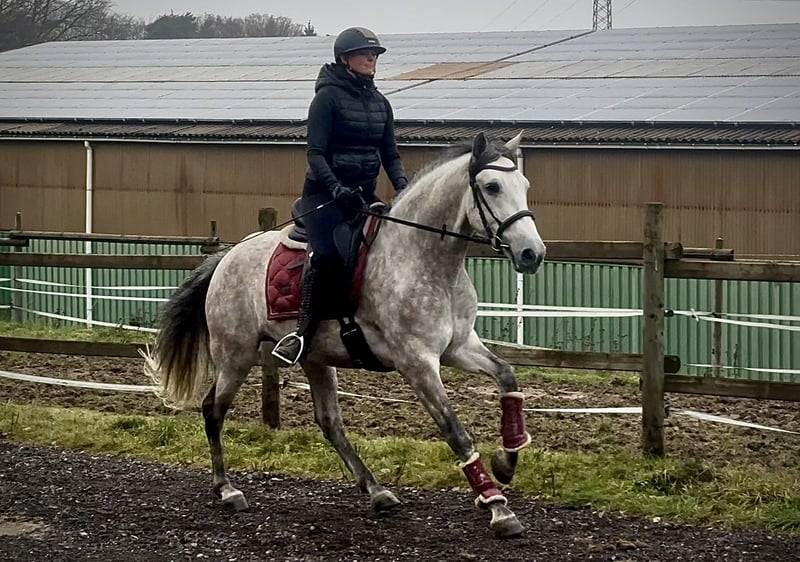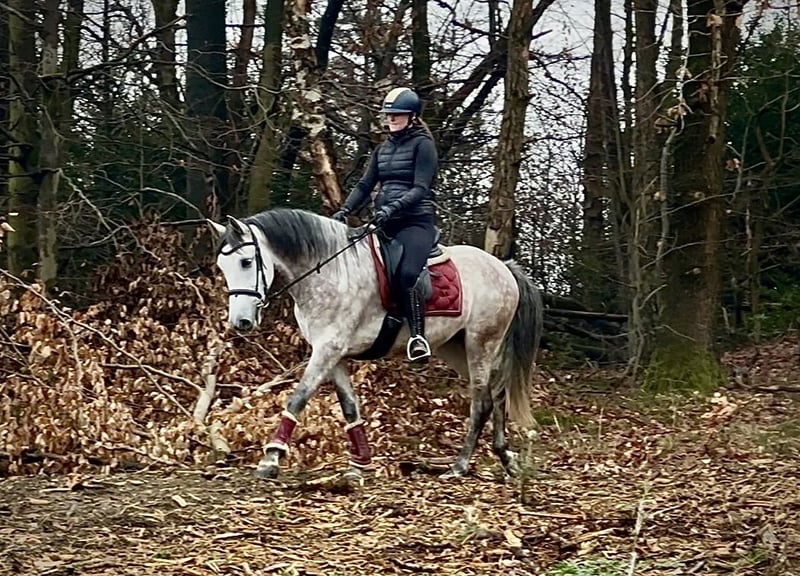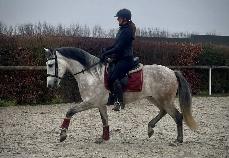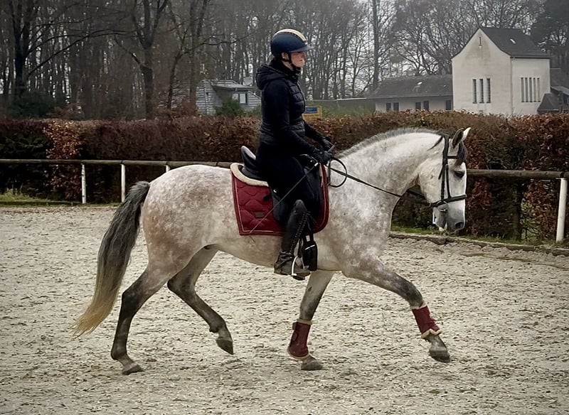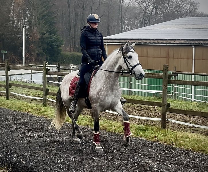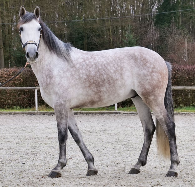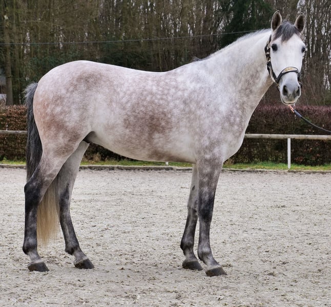 Name: Hispano Breed: P.R.E. (Pure Spanish Horse) Gender: Gelding Date of Birth: June 8, 2020 Age: 5 years Height: 15.8 hh Color: Grey (Dappled) Pedigree: Documentation available Temperament: People-oriented, reliable, intelligent, eager to learn, brave, patient Training/Suitability: Under saddle, Dressage, Leisure riding, Working Equitation Trail Experience: Trustworthy, fearless, comfortable alone or in a group Health: Dewormed, vaccinated, barefoot, eczema-free, teeth checked, osteopathically treated Stabling: Box, paddock Special Features: Very comfortable to sit on, shoe and load-trainable, herd-compatible Please note that these characteristics are based on our personal assessment and do not constitute guaranteed traits. Price: €7,900 (gross price) Have we sparked your interest? To give you a better impression of Hispano, we are happy to send you a video of him riding. Of course, we are available for a detailed description of the horse, personal consultation, and to answer all your questions via phone. Please feel free to contact us anytime via WhatsApp message or call us at: +49 151 19487595 Our phone hours are daily from 7:00 AM to 1:30 PM and again from 8:00 PM. We look forward to hearing from you! A clinical or radiological purchase examination can be carried out by your veterinarian of choice. Hispano can be safely and comfortably delivered to his new home. We take care of all preparations and transportation so your new horse arrives stress-free, well cared for, insured, and in good health. Currently, we offer a carefully selected range of horses for sale. With us, you are sure to find your dream horse. Feel free to visit our website at: www.marvinsroyalhorses.de. Dear customers, we would be happy to introduce you to our horses and offer grooming, tacking, lunging, ground work, as well as trial riding in the riding hall, on the arena, or in the field to get to know your new family member better. This service costs €40 per horse, with each additional horse €30, and will be refunded upon purchase. Our address: Ferdinand Grube 50 53577 Neustadt-Wied Google Maps: marvinsroyalhorses