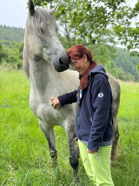 Our Fabio is looking for a new home. He currently lives in a herd with two mares, kept in the outdoor paddock during the winter and fully outside during the grazing season. He is a sensitive little soul and requires someone with experience in handling the delicate nature of Iberian horses. You need to have a sincere heart and personality, be fair with him, and provide him with security. Anything else is pointless! He reacts sensitively to pressure, and unfortunately, the widespread unfair behavior of many horse people—such as harsh handling—will cause him to withdraw completely and become distrustful. He is not suitable for competitions or the modern dressage training that relies heavily on pressure and similar methods. Such training is based on coercion and does not suit his gentle nature. Therefore, he needs people who are committed to understanding and respecting him, rather than those looking for quick results. He was backed in Spain, then re-educated here in Germany, and we purchased him from there. Due to his shy nature, sensitivity, and gentleness, he was not suitable for sale through a dealer at the time and was meant to return to Spain. We prevented that from happening. He has now been with us for three years. The beginning was challenging! He was especially fearful and would retreat to the farthest corner of the stall at the slightest sign of stress. Our main goal was to build trust. Since riding was never our priority, that was not a problem for us. I am not a rider myself; my daughter has ridden him. He needs security, clear and fair communication, and lots of love. Unfortunately, my daughter has not had time for training for a long time due to her own commitments, and her interest has waned. I can no longer provide what he needs because I am very ill. Of course, he could simply stay here and be part of the herd, but he truly needs his human. He is curious and learns very quickly. Here, he is simply chronically under-stimulated. Fabio has not been ridden for almost two years. I have worked with him in liberty and groundwork until last summer, which he absolutely loves! When he trusts someone, he will go anywhere without a halter—even completely free. Making the decision to rehome him is very difficult for our entire family. Many tears have been shed and will likely flow again. But we must think of Fabio’s well-being first; we have a responsibility towards him. If you see yourself in what I’ve written and are willing to walk this path with Fabio, please get in touch. Thank you for reading.