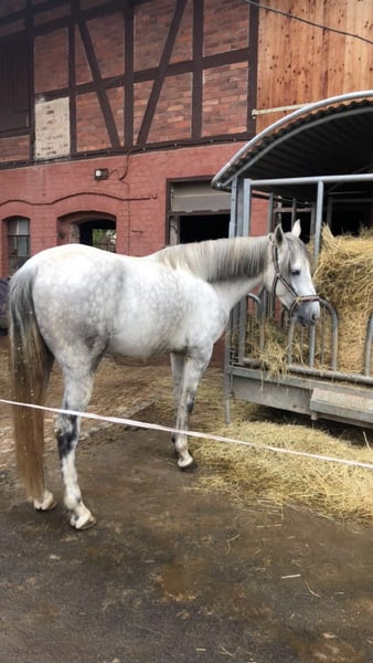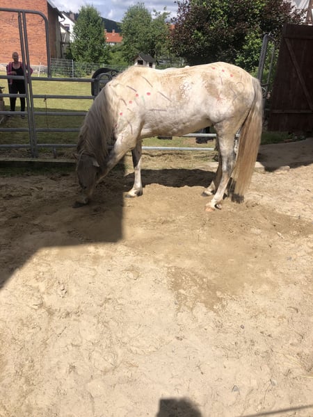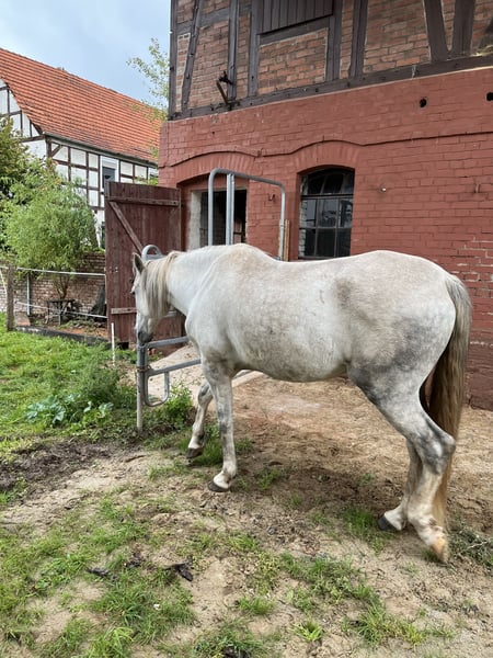 Unser Fabio sucht ein neues zu Hause. Er steht hier im Offenstall mit zwei Stuten im Winter am Hof und in der Weidesaison komplett draußen. Er ist ein kleines sensibelchen und benötigt jemanden der Erfahrung mit dem sensiblen Charakter der iberischen Pferde hat! Man muss ein aufrichtiges Herz/Wesen besitzen, fair sein zu ihm und ihm Sicherheit geben. Alles andere ist sinnlos! Auf Druck reagiert er sensibel, also das leider weit verbreitete unfaire Verhalten vieler Pferdeleute, wird er mit totalen Rückzug und Misstrauen beantworten!!! Er ist nicht geeignet für Turniere oder dem heutigen leider gängigen Dressurgereite ala Werth und Co, da dies nur auf massiven Druck uvm beruht. Demzufolge brauchen Menschen die Fan davon sind sich keine Mühe machen! Er wurde in Spanien eingeritten, dann hier in Deutschland nochmals in Beritt gegeben und von da haben wir ihn gekauft. Aufgrund seiner schüchternen Art, Sensibilität und Sanftheit war er damals nicht regulär vom Händler verkäuflich und sollte zurück nach Spanien gehen. Wir haben ihm dies erspart. Er ist jetzt drei Jahre bei uns. Der Anfang war nicht einfach! Er hatte vor allem Angst! Er hatte sich schon beim betreten des Stalls in die hinterste Ecke verzogen. Deshalb war für uns einfach wichtig: Vertrauen aufbauen. Da reiten bei uns eh nie im Vordergrund steht, war das für uns auch nicht schlimm. Da ich selbst kein Reiter bin, hat meine Tochter ihn geritten. Er benötigt Sicherheit, klare faire Kommunikation mit viel Liebe! Leider hat meine Tochter ausbildungsbedingt schon lange keine Zeit mehr und das Interesse ist auch immer mehr verloren gegangen. Ich kann das was er braucht nicht mehr leisten, da ich sehr krank bin. Natürlich könnte er hier einfach weiter mitlaufen, aber er benötigt einfach seinen Menschen. Er ist neugierig und lernt sehr schnell. Hier ist er einfach chronisch unterfordert! Fabio wurde jetzt seit bald zwei Jahren nicht mehr geritten. Ich selbst habe mit ihm bis letztes Jahr im Sommer immer wieder mal ein bisschen Freiarbeit gemacht. Das liebt er total! Wenn er einem vertraut, geht er überall mit hin, auch sogar ohne Strick! Diesen Schritt zu gehen fällt der gesamten Familie sehr schwer. Hier sind viele Tränen geflossen und werden auch sicher noch fließen. Aber wir dürfen nicht an uns selbst denken, wir tragen Verantwortung für Fabio. Wer sich in dem wiederfindet was ich geschrieben habe und den Weg mit Fabio zusammen gehen möchte, der möchte sich bitte melden. Dankeschön fürs Lesen
