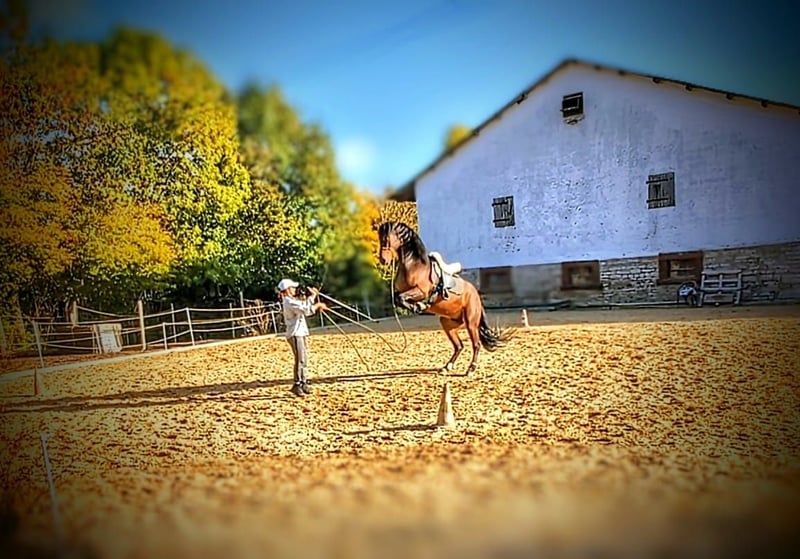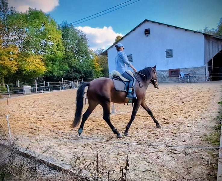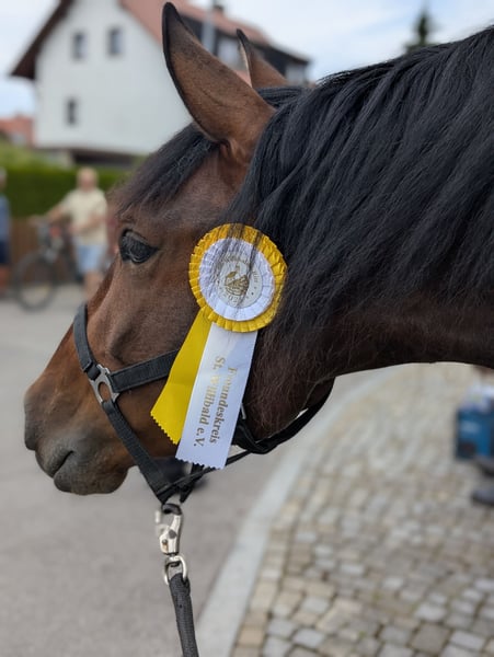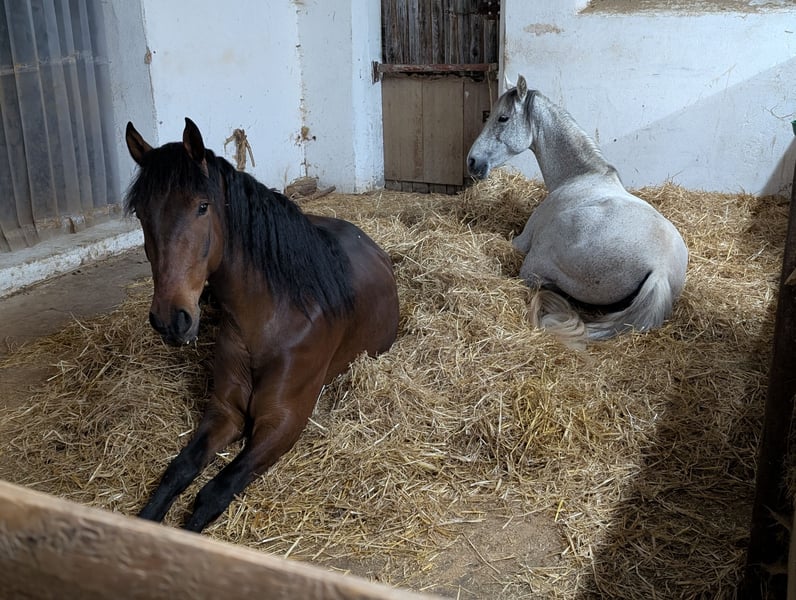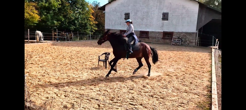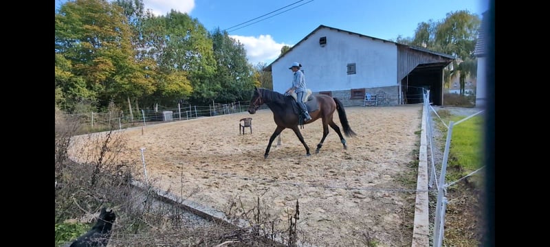Ich biete hier die Gelegenheit, meinen herzensguten fast 7-jährigen Wallach (Juni 2019) zu kaufen oder stelle ihn unter den passenden Umständen auch zur Verfügung. Er ist ein sportlicher und dynamischer Typ mit sehr guter Abstammung (viel Escalera-Linie). Beides nur wenn es wirklich zwischen euch und dem neuen Zuhause passen würde. 2-jährig hat er Röntgenbilder erhalten = oB. Auch heute keine Auffälligkeiten oder Krankheiten bekannt. Taco hat außerdem einen aktuellen Zahnpass und würde hier vor Übergabe auch nochmal einen Check sowie Impfauffrischung bekommen, wenn gewünscht. Ich hatte ihn im Alter von 2 1/2 Jahren von einer Züchterin aus Süddeutschland gekauft. Diese hatte ihn von ihren Partnern aus Spanien zugekauft. Er ist auf der Weide im Herdenverband aufgewachsen und in Deutschland immer auch mit anderen im Offenfall. Kennt aber zeitweise auch die Box. Taco ist ein antändiges, sensibles/feines aber auch mutiges Pferd. Er möchte immer gefallen und ist bei der Arbeit sehr eifrig und strebsam. In der Herde nimmt er eher eine ranghöhere Position ein und zeigt hier seine dominante Seite. Im Umgang mit dem Menschen ist er gut erzogen und einfach händelbar. Er kennt auch den Umgang mit Kindern sowie vielseitige Begebenheiten von Hofleben über Straßenverkehr etc. Natürlich ist er Schmiedefromm und lässt sich einfach verladen. Er war bisher nur circa ein halbes Jahr mit Duplos beschlagen, ansonsten immer barhuf oder mit Hufschuhen. Ausbildung: Der Schwerpunkt der Ausbildung lag stets in der gesundheitsfördernden Arbeit vom Boden aus. Er kennt vielseitige Arbeit vom Boden und wurde hier viel über die Körpersprache gearbeitet. Kein klassisches Longieren und auch keine Ausbinder o.ä. - horsemanship - Arbeit mit dem Kappzaum - Fahren vom Boden (auch mit Gewicht, u.a. zum Abziehen des Reitplatzes) - Basis der Handarbeit - Seitengänge vom Bode; Übergänge Schritt-Galopp, usw - Stangenarbeit und kleinere Gymnastiksprünge - vereinzelt beginnende Zirkuslektionen wie Steigen, Knien Seine weiteren Erfahrungen: - 3 monatige Wanderung Richtung und durch Bayern - Umzug mit Pferdesegnung - Kennt hauptsächlich Offenstallhaltung in kleiner Herde Die reiterliche Grundbasis ist bis zum letzten Herbst gelegt worden und bestand in Schritt, Trab, Galopp auf dem Platz und auch Schritt, Trab im Gelände. Das Ganze wurde über den Winter pausiert und wird jetzt wieder langsam aufgenommen. Reiterlich also kein Pferd für Anfänger. Hier darf im eigenen Tempo gefördert werden. Taco ist ein wunderbares Pferd und wird hier nur angeboten, da der eigene Hof nun verkauft wurde und sich die Lebensumstände insgesamt verändert haben. Er hat einen Besitzer verdient, der seinen Bedürfnissen gerecht wird und ihn weiter fördert und er in einem kleinen Herdenverbund Leben darf. Einen Spielkameraden wäre perfekt. Derzeit lebt er mit einer Stute zusammen. Ist somit auch Stutenverträglich und springt nicht auf. Schreibt mich gerne an bei Fragen oder lernt ihn direkt kennen. Ein Kennenlernen lohnt sich bei ihm.