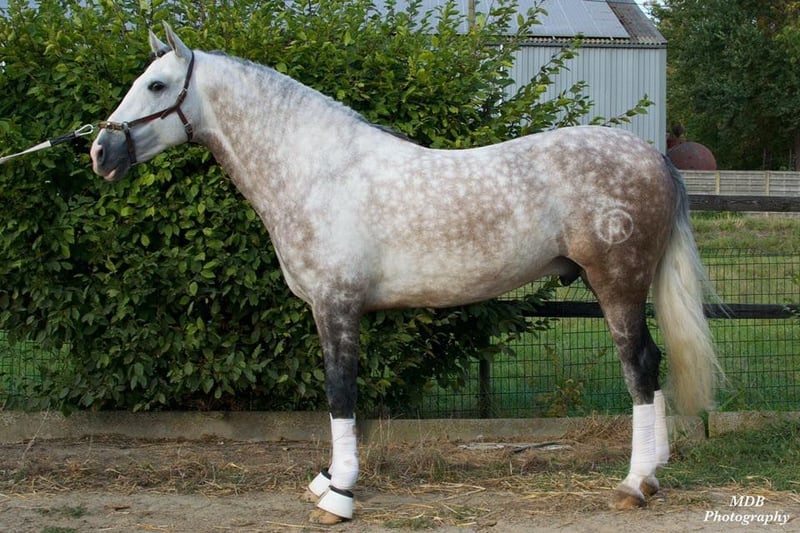 Hermoso caballo PRE de tipo barroco, ideal para toda la familia. Es un caballo con carácter fuerte, mucha sensibilidad y potencia. Ya sea para doma, salto, paseos o trabajo en el suelo, siempre da el 100% en todo. Conoce todas las lecciones básicas de doma, incluyendo piaffe, paso español y passage, por supuesto. Es muy cercano a las personas, aunque selecciona a su humano. En invierno, puede tener algunas dificultades con el aire, lo que a veces provoca conjuntivitis en los ojos. Con gotas lubricantes o enjuagues con té negro, se controla bien. Es fácil de cargar en remolque y apto para herrar. Necesita claramente una dueña o cuidadora segura y con autoridad. Hasta los 2 años fue semental. Su madre no fue aprobada en la inspección de razas. Ambos padres son PRE.