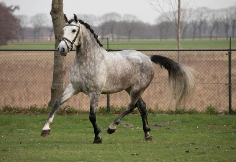 Gatsby, born May 2017, is a purebred PRE gelding. He stands approximately 1.64 meters (16.1 hh) tall and is a gray (white) horse. He is playful, affectionate, and very people-oriented. He came to me at the age of 3.5 years. Initially, he was worked from the ground and we went on many walks. After gentle riding training began at 4.5 years old, Gatsby is currently being exercised recreationally and further educated. This includes riding on the arena and in the field, as well as fascia work and groundwork. He is farrier- and loading-friendly, knows small children, dogs, tractors, and traffic. Gatsby is healthy, eczema-free, vaccinated, and dewormed. Gatsby requires clear, friendly guidance and is only suitable for an experienced horse person. He is gentle and polite in handling, eager to please, and wants to do everything right. However, he is also sensitive, needing patience, consistency, and a gentle hand. If these criteria are met, Gatsby is a real pleasure to ride; he is motivated and eager to learn. He feels most comfortable in a small herd with his own paddock box for the night. My hope is to find Gatsby’s soulmate and to give him a forever home. Priority goes to placement over price. Videos and further information gladly available upon request. No sales to dealers or riding schools.