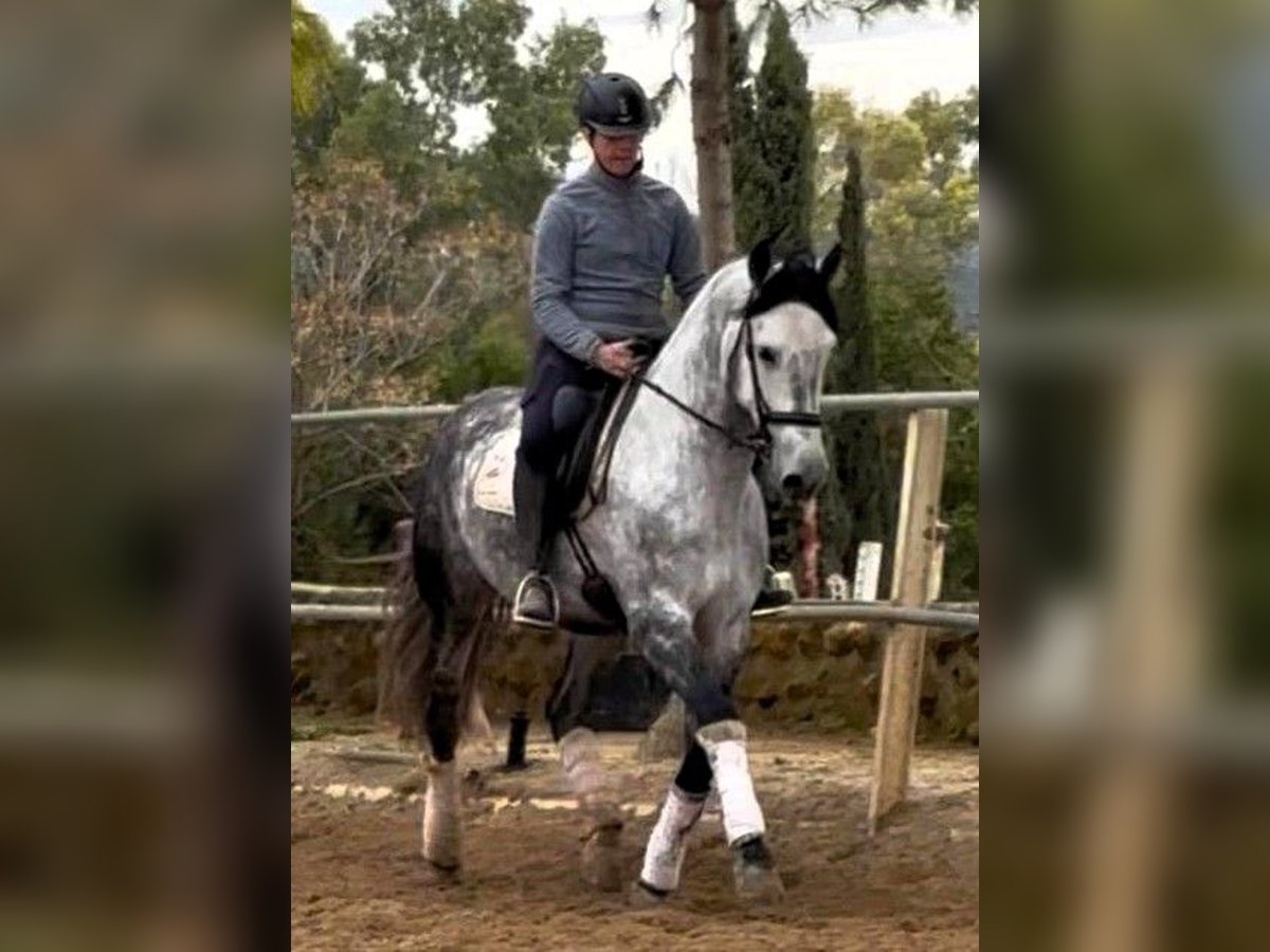 Alles wat hij goed maakt, is zijn goede karakter: nobel, gemakkelijk in de omgang, met die rustige houding die alles eenvoudiger maakt. Wat echt aantrekkelijk is, is dat hij zich aanpast aan jouw wensen: hij kan worden gereden in een snaffel met dressuurzadel, maar ook met een curb bit en tuig voor werkpaardrijden. Dit is een zeer veelzijdig paard, perfect als je plezier wilt hebben zowel in een meer "campero" stijl als in de rijbak. Hij heeft energie en reageert snel op de hulpteugels. In de rijbak gedraagt hij zich zeer goed, en buiten houdt hij hetzelfde gedrag. Hij gaat alleen of in gezelschap uit, met een aangename gang en een goede instelling. In dressuur wordt hij geïntroduceerd in zijgangen: hij voert al het schouderbinnen en het schouder-in uit, met een basis die je rustig verder kunt ontwikkelen, gebruikmakend van het werk. IberHorse: Al meer dan 14 jaar selecteren wij Iberische paarden voor een internationale clientèle. Als dit veelzijdige en betrouwbare PRE (Pura Raza Española) bij jouw project past, neem dan contact met ons op: we regelen een videogesprek om hem te ontdekken zonder je huis te verlaten, of een afspraak om hem in het echt te zien.