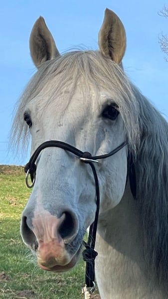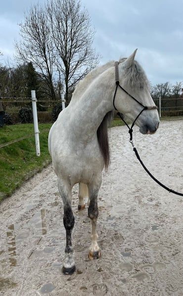 Armas is now an 8-year-old purebred PRE gelding with full ANCCE papers. He arrived in Germany three and a half years ago as a “problem stallion” with a Spanish background. At that time, he was described as a “difficult horse.” However, it quickly became clear that his behavior was not due to malice but simply fear of the rider, and he was also very skittish in handling. We started from scratch with him, giving him time to settle in so he could rebuild trust. Over time, Armas has become a real sweetheart in handling. In fall 2023, he was gelded and has since become noticeably calmer. Since then, he has been ground-trained and re-accustomed to saddle and bridle, but he has not been ridden yet, as I took over him at the beginning of 2024. He is absolutely gentle and reliable in handling (he loves walking out). In daily work, it is increasingly clear that Armas is a true “one-person horse.” He is seeking a close bond and actively demands it. Armas developed well with me; after four months, he was able to be ridden in walk. However, I then suffered a severe health setback that is still ongoing and repeatedly affects my ability to train consistently. Because of these recurring issues (weeks at a time), the training always has to start over, creating a never-ending cycle. Last November, Armas was last ridden in walk. I was unable to continue working with him until just three weeks ago, when I finally resumed training. It is with a heavy heart that I have now decided to find a new person for Armas, as this endless cycle cannot continue. It breaks my heart, but I simply cannot do him justice anymore — and he deserves better. Given the progress made so far, I remain hopeful that Armas can become a riding horse again if someone is willing to work with him consistently. He is not inherently spooky but needs to build trust in humans. In summer 2023, he was ridden in walk and trot by his previous owners, but the decision was made to geld him first. I am looking for someone who will give Armas the time he needs and who will rebuild his confidence with patience and love. Due to his past, Armas is not suitable for beginners and requires an experienced, confident handler to help him forget the shadows of his history.