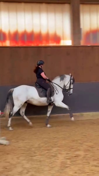 Er ist 8 Jahre alt und seid 4 Jahren in meinem Besitz. Er ist ein außergewöhnlicher PRE Wallach im sportlich kompakten Typ stehend, der als gehobene Allrounder viele Disziplinen abdeckt. Besonders erwähnenswert ist seine positive Arbeitseinstellung unter dem Sattel und bei der Hand- & Bodenarbeit er möchte unbedingt arbeiten und rassetypisch immer gefallen.Er ist bis L ausgebildet und sehr lernfreudig. Da er schon immer in erfahrenen Händen ist zwecks Ausbildung und Umgang und wir uns das auch weiterhin für ihn wünschen würden geht kein Verkauf an Reitanfänger Er ist 1,66 groß und deckt gut auch grosse Reiter ab. Dieser grandiose Pura Raza Española Wallach lernt super schnell und bringt von Natur aus viel Leistungsbereitschaft, Kampfgeist und ein kontrolliertes Temperament mit. Marinero hat einen noblen aber zugleich starken Charakter, daher wäre ein ambitionierter Reiter der ihn vielfältig fordern kann wünschenswert. Im Umgang ist er sehr gut erzogen und vom Boden und vom Sattel aus sehr lieb. Außerdem ist er vertraut mit Hunden, Katzen, Traktoren. Aktuell steht er in einer Box mit Paddock und hat täglichem Koppelgang mit einem alten Ponywallach. Vor vier Jahren wurde Marinero von mir gekauft und mit einer Freundin zusammen angeritten. Natürlich wurde er regelmäßig entwurmt, geimpft, die Zähne gemacht, und dem Hufschmied vorgestellt (aktuell barhuf). Wir wünschen uns für ihn ein liebevolles Zuhause mit Koppel. Preis 10.000€ - 15.000€ VB