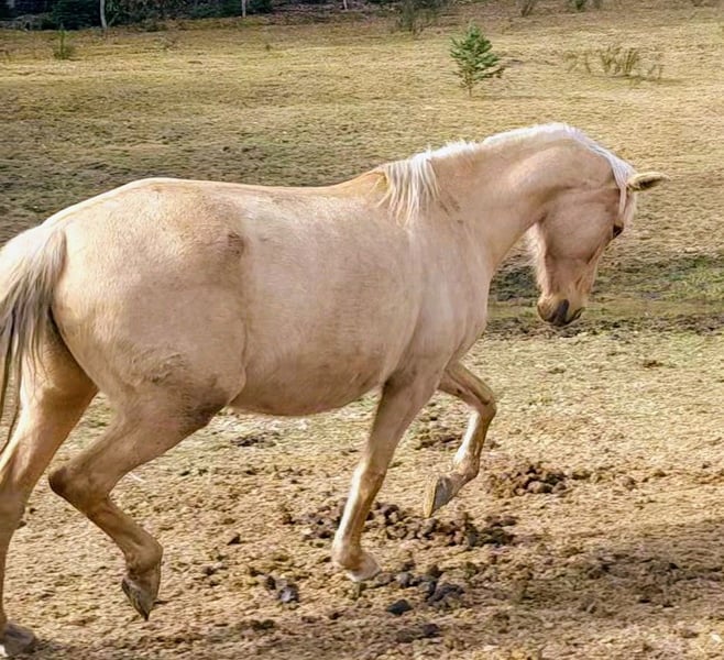 Ze względu na wybór hodowli i zmniejszenie stada, oferujemy Cora XXI, klaczę palomino rasy hiszpańskiej, w wieku 10 lat, APTA, o wzroście 1,58 m, testowaną negatywnie na PSSM1. Doświadczona matka, z podstawowym wykształceniem (zapięta na kantar, chodzi na lonży, podaje kopyta, jeździ w przyczepie, delikatna podczas pielęgnacji, badanie USG w porządku), przyjazna podczas pielęgnacji, matczyna. Model raczej sportowy, zatwierdzona do hodowli także w rasie Selle Français. Obecnie w ciąży, będzie mogła dołączyć do nowego domu w kwietniu/maju, odrobaczona, poddana podkuwaniu, zaszczepiona przeciw grypie i tężcowi. Cena do negocjacji po obejrzeniu klaczy.