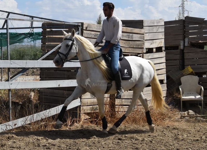 Uroczy charakter, jeźdzona i zaprzęgana w podstawowych chodach, klacz hodowlana, pochodzenie: Yeguada la Rosa, Los Retamales, posiada liczne wybitne przodki. www.elegante-andalusier.com