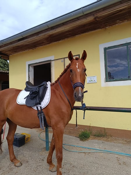 Bonita ist ein liebes Pferd, das aufgrund eines Befundes (der mit ein wenig Zeit vollständig heilbar ist) weit unterm Wert, zu verkaufen ist. Wir suchen ein liebevolles Zuhause als ambitioniertes freizeitpferd. Sie ist in der Klasse lizenzfrei gestartet und hat bereits Prüfungen mit einem Amateur solide bestritten. Beim ausreiten ist sie sehr brav und sie ist herdenverträglich. Aufgrund der Verletzung sollte sie noch ein wenig geschont werden, jedoch wird sie danach im Freizeit Bereich gut einsetzbar sein, und bei richtiger Heilung auch kleinere Turniere gehen können. Befunde sind vorhanden, und derzeit läuft sie Lahmfrei, jedoch geben wir ihr dennoch noch ein wenig mehr Zeit. Deshalb ist sie aktuell nicht im Training. Sie wird abgegeben aufgrund privater Umstände. Bei Interesse bitte anrufen oder über WhatsApp schreiben. +4369919566354