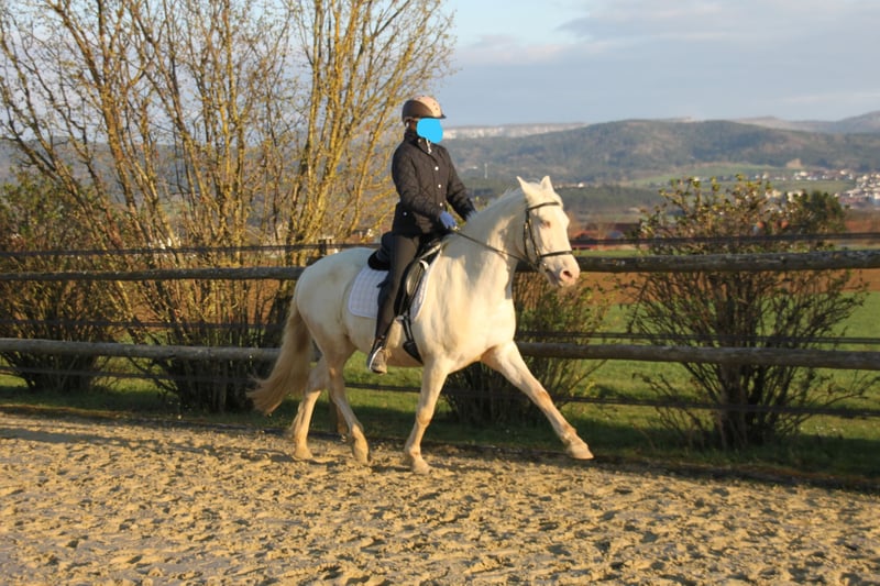 Schweren Herzens suchen wir für eine besondere Stute ein neues, liebevolles Zuhause. Mit ihren hellgrünen Augen und dem kompakten Körperbau ist sie nicht nur optisch ein Hingucker, sondern überzeugt vor allem durch ihr gutmütiges Wesen. Zucht & Besonderheit: Sie ist eine erfahrene Zuchtstute (3 Fohlen) und genetisch eine absolute Rarität: Sie trägt das seltene Pearl-Gen aus unbekannten Linien, was sie für die Farbzucht hochinteressant macht. Außerdem ist sie Fuchs und trägt beide Rappgene. Ihr Farbgencode lautet: ggeeaaCrPrl. Zusätzlich zum spanischen Stutbuch ist sie im Zfdp mit 1,48 m eingetragen. Charakter & Temperament: Im Umgang ist sie ein absoluter Schatz – immer artig, fein und sehr menschenbezogen. Unter dem Sattel / bei der Arbeit zeigt sie sich lern- und lauffreudig und extrem arbeitswillig. Sie möchte gefallen, bleibt dabei aber stets anständig und händelbar. Sie wurde über die Jahre in ihren Fohlenpausen schonend angeritten, geht brav auf dem Reitplatz ihre Lektionen, kennt vertikale Handarbeit und war auch ein paar Mal in Begleitung im Gelände. Haltung: Sie kennt Herdenhaltung im Offenstall mit Paddock als auch Boxenhaltung. Leider haben wir zu wenig Zeit für ihren Arbeitswillen und wünschen uns für sie einen Platz, an dem sie gefördert wird und viel Bewegung mit Familienanschluss hat. Wenn Sie eine feine Partnerin für die Freizeit suchen, die immer ihr Bestes gibt, freuen wir uns auf Ihre Nachricht!