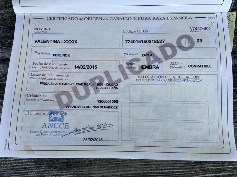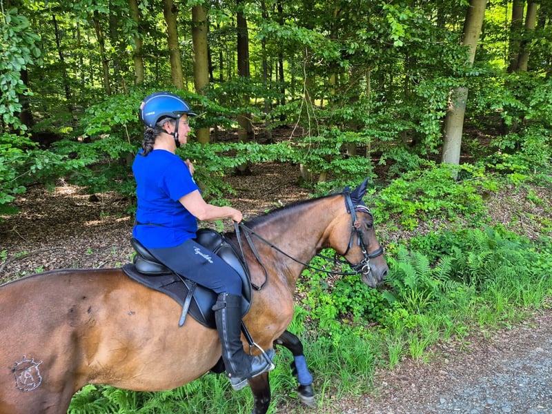 Bellissima cavalla P.R.E. baia, di 11 anni, alta 1,57 m, senza segni distintivi. Cammina a piedi nudi, anche se lo scorso estate ha portato ferri anteriori. È molto facile da montare, con risposte piacevoli alle richieste. Mostra un carattere molto sensibile e orientato all’ambiente, rimanendo comunque gestibile, anche durante il lavoro a terra. In gestione è un vero tesoro: si lascia toccare ovunque, è dolce nel maneggio quotidiano e sempre amichevole. Si comporta in modo esemplare dal ferratore e dal veterinario. Da quando è con me, non si è mai ammalata. Ha ottimi zoccoli ed è regolarmente controllata da un osteopata. Anche in passeggiata è montabile e dà molta gioia. Siamo usciti in due e anche da soli, ampliando le uscite. Non si sa se abbia già avuto dei puledri. È in Germania da 3 anni, finora senza eczema. Una splendida cavalla per cavalieri che cercano una compagna affidabile e obbediente per il tempo libero. Mi farebbe piacere ricevere contatti da persone con esperienza nel lavoro con i cavalli spagnoli o da chi sa mantenere la calma anche in situazioni difficili.