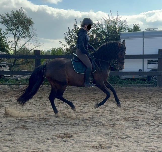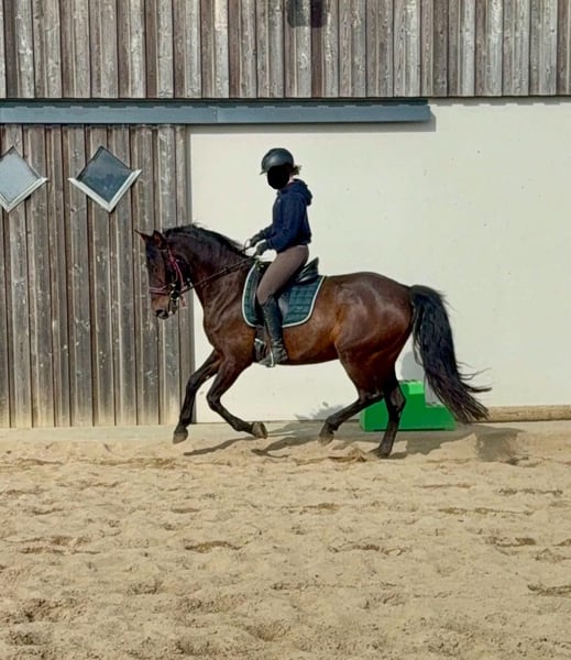 Tolle 11 Jahre alt PRE Stute, 163cm groß mit voller Abstammung. Sie ist gut dressurmäßig geritten und befindet sich aktuell ungefähr auf A Niveau. Sie war einige Zeit in Beritt und wurde da zum Schluss auch etwa im Reitunterricht mit genutzt. Im Umgang ist sie super brav und immer gut händelbar. Mit Reiter zeigt sie keine Unarten und arbeitet gerne mit. Sie hat aber schon etwa go. Sie zeigte sich bisher auch im Gelände sehr brav und verlässlich. Ein Fohlen hatte sie auch schon und wäre auch für die Zucht geeignet. Krankheiten oder Allergien sind nicht bekannt. Eine AKU darf gerne gemacht werden. Für das Probereiten, Vorreiten oder anderes Ausprobieren des Pferdes berechnen wir 35€. Beim Kauf wird dies gutgeschrieben. Gerne anrufen oder eine Nachricht senden 0157 36803742 Alle Angaben ohne Gewähr, Preisänderungen vorbehalten, Transport möglich, Onlinekauf möglich