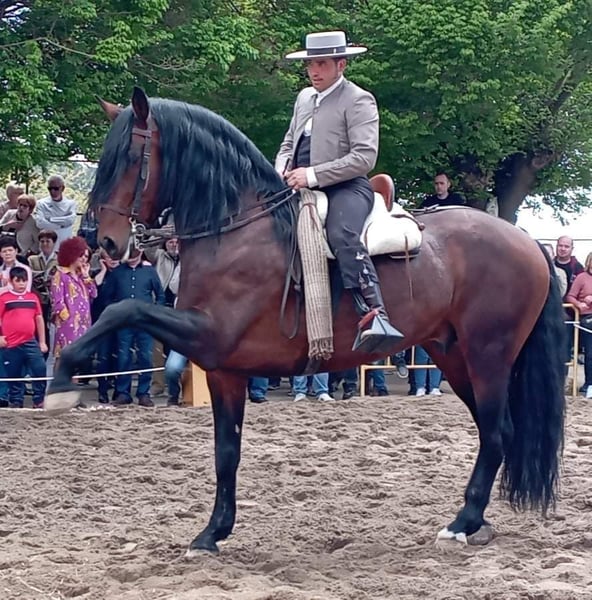 It is with a mixture of pride and care that I offer this very special 11-year-old PRE mare, standing at 168 cm, for sale to a knowledgeable and quality-oriented home. She is a large-framed, powerful, and correct mare with an expressive presence and truly exceptional gaits. Her trot is elastic, ground-covering and floating, with natural suspension and cadence. Her walk is particularly remarkable for a Spanish horse – she consistently overtracks nearly two hoof-lengths, showing excellent freedom through the shoulder and back. Pedigree-wise, she represents highly interesting and influential modern PRE lines. Among her ancestors you will find Urdidor VII and Dominante XVI, both extremely important and influential stallions in the development of the modern dressage-oriented PRE. Her bloodlines clearly emphasize rideability, movement quality and modern type. She has already proven herself as a broodmare and has produced several foals – her most recent one in beautiful Isabella coloring. In my care, she has also been gently started under saddle. She is very kind, willing to learn, and cooperative, though still at the beginning of her ridden career. Ideally, I see her as a valuable addition to a serious breeding program, where her quality of character, movement, and conformation will be appreciated and further developed. If desired, she can be covered by my asil pure arabian Arabian stallion. He carries unique old working bloodlines in Europe, with ancestors imported from Iran and egypt. Only one stud in Europe still preserves these rare lines. He is especially known for his outstanding character, rideability, and refinement. A foal from this combination would be a truly unique Hispano-Arab with exceptional genetic value. I am looking for a breeder with both an eye and a heart for true quality – in character, movement, and correct conformation. She is highly interesting for breeders both nationally and internationally. I would also warmly welcome the possibility of future contact and collaboration. If you feel this could be your next exceptional broodmare or just a nice riding Partner, feel free to contact and we can chat about all possible Options. -English- German - Spanish -