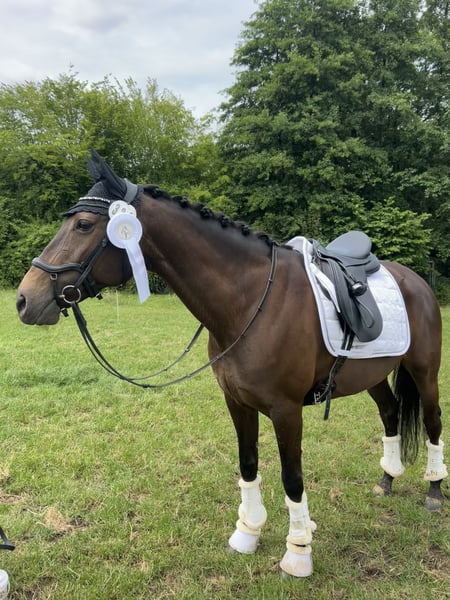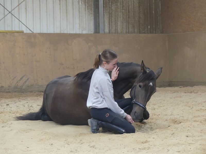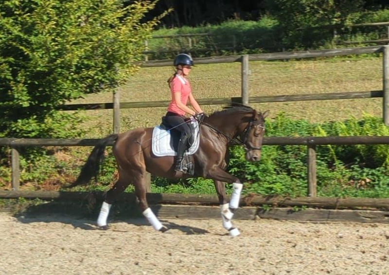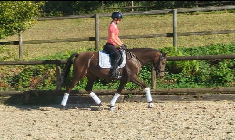 Mit schwerem Herzen suchen wir für unsere liebe Cruzado-Stute Rosa, ein neues Zuhause, in dem sie geschätzt und gefördert wird. Rosa ist eine ausdrucksstarke, dunkel-fuchsfarbene Stute, geboren am 16.04.2012, mit einem Stockmaß von 152 cm. Rosa wurde bei uns stets mit viel Liebe gepflegt, doch da unsere Tochter inzwischen in der Oberstufe ist und schulisch stark eingespannt ist, fehlt leider die Zeit, die Rosa verdient. Deshalb haben wir uns schweren Herzens dazu entschlossen, sie in fördernde und liebevolle Hände abzugeben. Sie überzeugt nicht nur durch ihr äußeres Erscheinungsbild, sondern auch durch ihre vielseitige Ausbildung und ihr ehrliches und liebenswertes Wesen. Rosa ist E-Dressur und E-Springen platziert und bis A-Dressur ausgebildet und ist absolut geländesicher – allein oder in der Gruppe. Sie ist daher ideal für ambitionierte Freizeitreiter, die sowohl Freude an der Arbeit als auch an entspannten Ausritten oder abwechslungsreicher Arbeit im Gelände haben. Im Umgang ist Rosa entspannt, freundlich und klar im Kopf, dabei aber immer motiviert bei der Arbeit – Wenn man fair mit ihr umgeht, dann hat man keine Probleme. Sie ist schmiede- und verladefromm, kennt den Tierarzt und verhält sich im Alltag zuverlässig. In der Herde ist sie unkompliziert und sozial, egal ob mit Stuten oder Wallachen. Derzeit lebt sie in einer Box mit täglichem Weidegang in einer Stutengruppe und fühlt sich mit dieser Haltungsform sehr wohl. Rosa ist gesund, fit und wird regelmäßig entwurmt, geimpft und die Zähne gemacht zuletzt im vergangenen August. Sie wurde stets gut gepflegt und artgerecht gehalten. Da mir das Wohl unseres Pferdes über alles geht, wird Rosa ausschließlich in erfahrene und liebevolle Hände abgegeben, wo sie auch ein Familienmitglied sein kann. Ein gutes Zuhause ist uns wichtiger als der Preis. Umfangreiches Zubehör gegen Aufpreis auf Wunsch mit abzugeben. Sie wird nicht zur Verfügung gestellt und um Reittourismus zu vermeiden veranschlagen wir 25€, was beim Kauf selbstverständlich verrechnet wird. Aufgrund ihrer Größe und Statur möchten wir nicht, dass sie mehr als 60kg trägt.