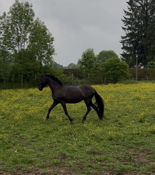 Höfliche sehr fein zu reitende Andalusierstute. Sie geht alleine und in der Gruppe gerne ins Gelände und ist trittsicher und unerschrocken. Modosa ist seit drei Jahren in Deutschland und hatte 11/2023 ein sehr korrektes Hengstfohlen. Sie kennt Box und Offenstall und steht gerne in einer größeren Herde. Bei Fragen bitte einfach melden