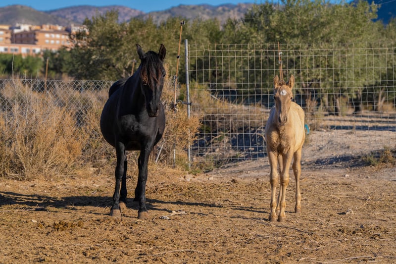 Ciężarna klacz: Energiczna i doświadczona klacz hodowlana z źrebięciem przy boku. Klacz jest sprzedawana bez źrebięcia. Klacz nosi gen PRl i z ogierem o maści champagne da w 100% źrebię o maści champagne. Źrebię może być nawet nosicielem genu Dun, ponieważ ma ciemną głowę i pręgę grzbietową. Więcej informacji na: www.caballoria.com