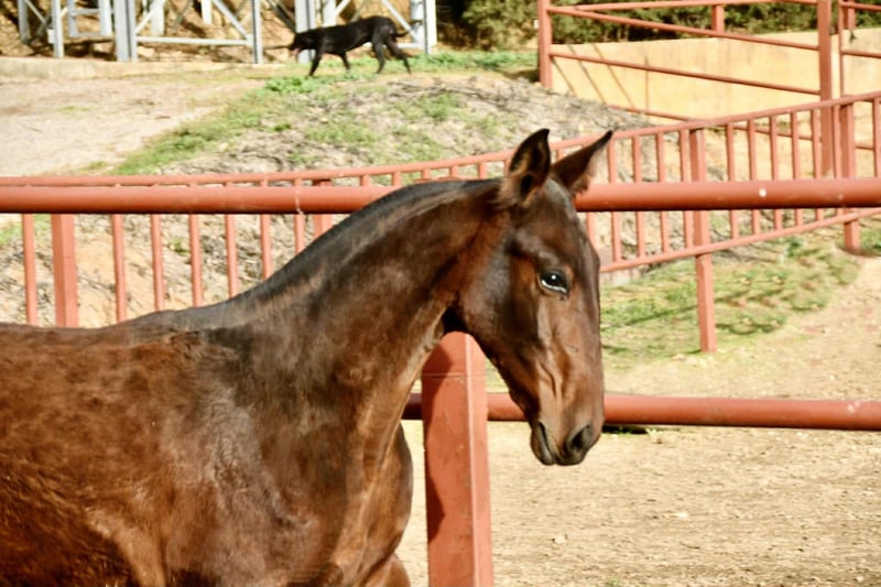 Etica Onuba. An 8-month-old PRE filly with full papers. Her sire is our stallion TH Consentido, and her dam is Pensadora, one of our top mares. She stands out for her conformation, being very large and strongly built. She has the same head as her sire. Her temperament couldn't be better. We have two full sisters of hers (same dam) in our breeding program. She comes from an excellent bloodline; her sire is Huron IX, one of the few elite stallions. We are fully convinced that she is a mare with a bright future ahead. Without a doubt, she will meet the expectations of even the most demanding buyers. Worldwide transport can be arranged. For more information, send us a private message or contact us via WhatsApp. Visit our Facebook page: https://www.facebook.com/sierraonuba