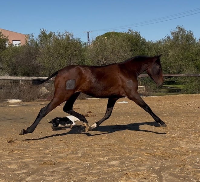 Diese wunderschöne Stute besticht durch ihr außergewöhnlich gutes Gangwerk. Mit ihren zwei Jahren, weiß sie sich zu bewegen. Das wird eine tolle Stute, die sich für die Dressur oder auch für die Zucht empfiehlt. Im Umgang ist brav und gut erzogen. Ist halfterführig und kennt auch schon das Putzen. Ihre Abstammung ist vom Feinsten. Ihr Vater ist der große Rappe Nelson (Yeguada Militar), sein Vater Gerente geht auf Remache zurück. Ihre Mutter vereint Candau Blut, Esclaera und den bewegungsstarke Vinatero III Das Pferd wird im Auftrag verkauft. Er kann gerne bei uns noch in Beritt bleiben. Eine AKU wird kurzfristig organisiert. Internationaler Transport.