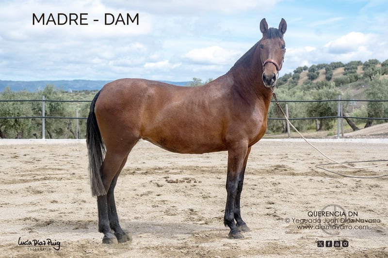 ¡Oportunidad de adquirir una potra con una capa espectacular y un físico increíble! https://diaznavarro.es/enamorada-dn Se vende preciosa yegua de raza PRE, nacida en el año 2024. De color palomino, con un pelaje brillante y llamativo. Tiene una alzada de 165 cm, ideal para diferentes disciplinas y actividades ecuestres. Esta ejemplar proviene de una excelente genealogía, garantizando calidad y potencial para futuras competencias o para uso en la reproducción. Es una yegua con carácter equilibrado, apta tanto para jinetes experimentados como para quienes desean iniciarse en el mundo del caballo. Capa genética (genotipo): ggAaeeCCrNN Alzada: 1’56m a la cruz (25/06/2025) Comentarios: añoja con mucho potencial, pudiendo dar crías de todas las capas menos las isabelas. Líneas: Divo, Norte A, Cepellón, Velero XI, Lego, Lebrijano III, Bizarro XIV, Llamativo II. Yeguada Militar, Vizconde de la Montesina, D. Benito Zoido, Paco Marti. No pierda la oportunidad de incorporar a su familia o finca una yegua de gran calidad y belleza. Para más información y consultas, no dude en contactarnos.
