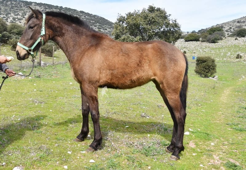 lieber Charakter, roh, steht mit anderen Pferden draußen, spezielle Farbe, Falbe mit PRE Papieren, Abstammung: Paco Marti, Yeguada Jordi Matas Pulido www.elegante-andalusier.com