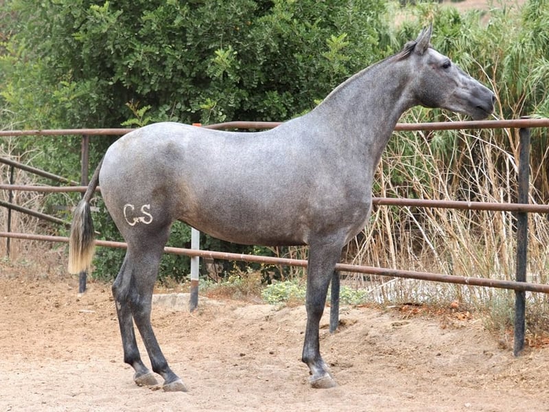 We present a spectacular Pura Raza Española (PRE) filly born in 2023, already standing out for her excellent physical and functional qualities. With a current height of 162 cm and coming from a line of tall parents, everything indicates that she will reach a large and elegant size, ideal for those looking for an imposing and well-proportioned horse in the arena. From a morphological point of view, this filly shows a very correct and harmonious conformation, fully respecting the PRE breed standards: well-set neck, balanced back, and strong limbs. These features not only guarantee beauty but also long-term functionality and resilience. Her solid structure and conformation make her a perfect candidate both for dressage and other sporting disciplines. In terms of movement, she displays amplitude, cadence, and elasticity, qualities that suggest great potential for progression in dressage. Her expressive trot and forward-going canter show balance and natural ability, while her noble and manageable character make her very easy to work with from the very beginning. Another remarkable aspect is her excellent value for money, making her a unique opportunity for those wishing to invest in a young filly with a promising future, whether for competition, quality leisure riding, or selective breeding projects. In short, this is a PRE filly with outstanding prospects, combining beauty, nobility, and sporting potential.