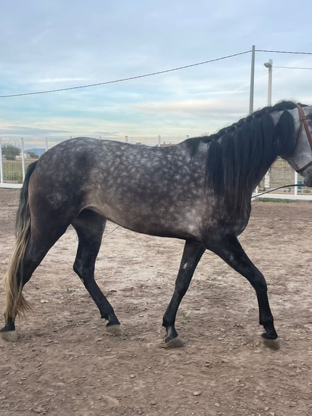 Opportunité d’acquérir une magnifique jument polyvalente ! Caractéristiques principales : - Race : PRE (Pura Race Espagnole) - Sexe : Jument - Année de naissance : 2021 - Couleur : Isabelline tachetée - Taille : 1,60 m - Utilisation : Idéale pour le loisir et le plaisir Cette belle jument allie élégance et tempérament, parfaite pour ceux qui recherchent une compagne fiable et d’une beauté exceptionnelle. Ne manquez pas l’occasion de faire sa connaissance et de profiter de sa compagnie lors d’activités de loisir et d’équitation. Pour plus d’informations, n’hésitez pas à nous contacter.