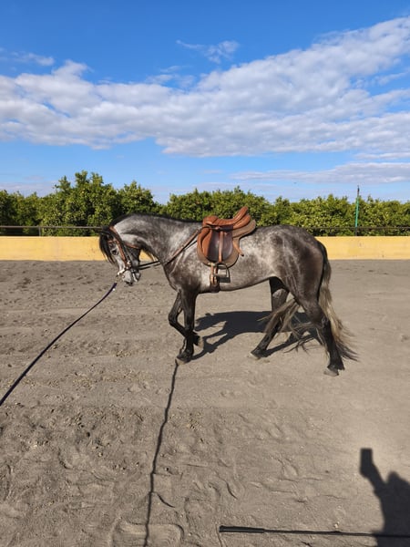 Kans om een prachtige en veelzijdige merrie aan te schaffen! Belangrijkste kenmerken: - Ras: PRE (Pure Spanish Horse) - Geslacht: Merrie - Geboortedatum: 2021 - Kleur: Tordo roan - Hoogte: 1,60 m - Gebruik: Ideaal voor recreatie en plezier Deze mooie merrie combineert elegantie met karakter en is perfect voor wie op zoek is naar een betrouwbare metgezel met een uitzonderlijke uitstraling. Mis deze kans niet om haar te leren kennen en te genieten van haar gezelschap tijdens recreatieve en rijactiviteiten. Voor meer informatie, neem gerust contact met ons op.