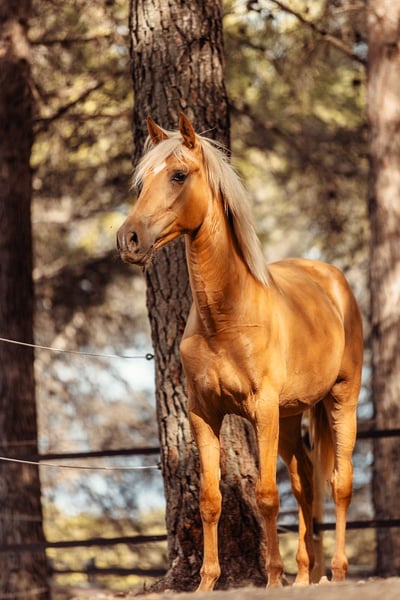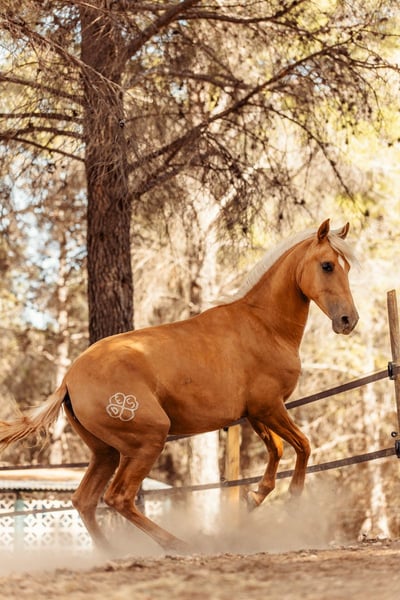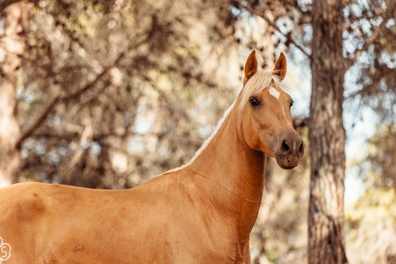 Pouliche née en août 2022. Capa Palomina (mère Sorrel et père Palomino - dernières photos des parents) Une pouliche très vive et joyeuse. Très affectueuse et très tactile.