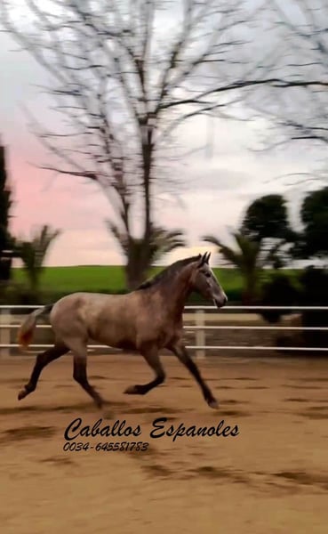 Top PRE mare, harmonious, baroque conformation, correct foundation. This mare immediately catches the eye with her charm and zest for life. She is well-behaved and very sociable. She has three excellent basic gaits. She is now being lunged and thus prepared for her life as a future riding horse. The mare not only has morphological qualities, but will also shine in any dressage or working equitation test. Pedigree; Candau The mare is being sold on commission. She is welcome to stay with us in training. An AKU will be organized at short notice. International transportation.