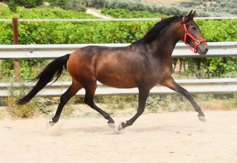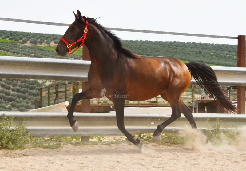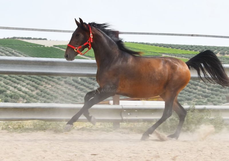 cher caractère avec tempérament, brut, est dehors avec d'autres juments, bonnes allures, ascendance : Escalera, Yeguada de Ymas, Yeguada Militar, media Guitarra, Paco Marti, Jesus Gil y Gil www.elegante-andalusier.com