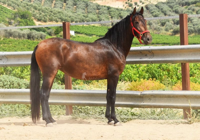 bel carattere con temperamento, grezzo, sta fuori con altre cavalle, buoni movimenti, pedigree: Escalera, Yeguada de Ymas, Yeguada Militar, media Guitarra, Paco Marti, Jesus Gil y Gil www.elegante-andalusier.com