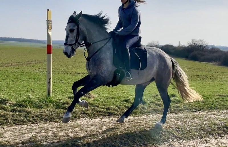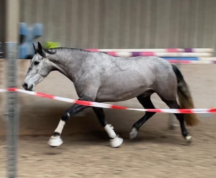 Zum Verkauf steht die 5-jährige PRE-Stute „Ella“ (ca. 1,60 m), eine ehrliche und unkomplizierte Partnerin für Freizeit und tägliche Arbeit. Ella ist brav im Umgang sowie unter dem Reiter und angenehm zu sitzen. Sie arbeitet motiviert mit und zeigt sich sowohl auf dem Platz als auch im Gelände zuverlässig. Im Gelände ist sie alleine sowie in der Gruppe unterwegs und dabei unerschrocken. Auch im täglichen Handling ist sie unkompliziert (schmiede- und verladefromm, rangniedrig). Freispringen zeigt sie mit Übersicht und Vermögen. Aufgrund ihres Alters befindet sie sich noch in weiterer Ausbildung und eignet sich daher für Reiter, die Freude daran haben, ein Pferd weiter zu fördern. Videos (Reiten, Gelände, Freispringen) können gerne zur Verfügung gestellt werden. Probereiten ist nach Absprache möglich (30 €, wird beim Kauf verrechnet). Platz vor Preis!