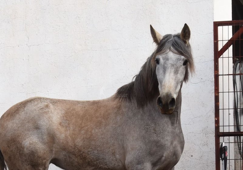 Przyjazny charakter, ciekawski, przytulaśny, surowy, na lonży, przebywa na pastwisku z innymi klaczami, dobre ruchy i pochodzenie. Pochodzenie: Plaza de Armas, Yeguada Militar, Yeguada Vilaire, dziadek Judio VII jest wykwalifikowany. www.elegante-andalusier.com