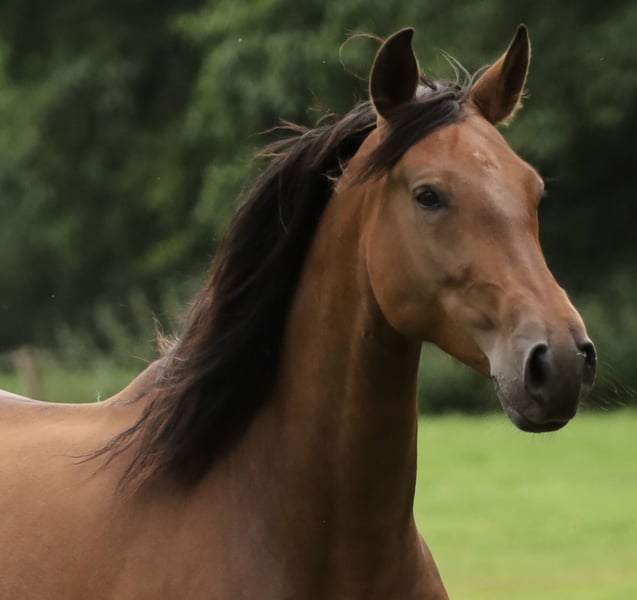 Retama del Parral est une magnifique jument pure PRE avec des papiers ANCCE complets. Sa lignée est indiquée sur ses papiers. Élevée dans une excellente ferme, protégée sur de vastes terrains. Jument expressive avec des allures supérieures à la moyenne. Corps harmonieux avec une base solide et saine. Avec sa taille imposante de plus de 1,65 m, elle convient aussi bien pour la Working Equitation exigeante, le dressage que pour le loisir haut de gamme. Un véritable joyau pour la reproduction. Elle connaît déjà le poids d’un cavalier et peut rester en Allemagne pour une formation complémentaire, contre rémunération. Actuellement, elle évolue dans un petit troupeau et se montre très sociable. Pour toute demande sérieuse, n'hésitez pas à me contacter par message ou téléphone pour plus d’informations !