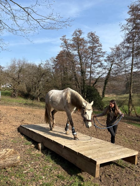 Magnifique jument PRE gris – fiable, courageuse et affectueuse À vendre, une élégante jument PRE née en 2020. Cette jeune dame séduit non seulement par son charisme, mais surtout par son tempérament exceptionnel. C’est une véritable monture de confiance : elle a déjà participé à un stage de feu, maîtrise avec assurance les obstacles en Extreme Trail, et reste toujours calme et sûre d’elle dans le parcours de détente. Partir seule en extérieur ne lui pose aucun problème – elle est parfaitement sûre en terrain varié et fiable. En carrière, elle marche volontiers dans toutes les trois allures et montre une grande volonté d’apprendre et une motivation constante. Elle souhaite plaire à son cavalier et travaille avec attention. Cependant, elle n’est pas recommandée pour un cavalier débutant, car elle souhaite continuer à apprendre et à être stimulée. En main, elle est particulièrement câline, affectueuse et proche de l’humain – une véritable jument de cœur. Un cheval idéal pour tous ceux qui recherchent un partenaire fiable pour la randonnée, la promenade en extérieur et un développement continu. Pour toute question sérieuse, n’hésitez pas à nous contacter !
