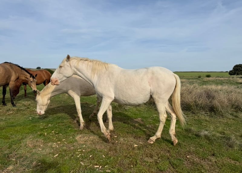 Se vende lote de alta calidad genética, compuesto por 3 yeguas reproductoras, 2 potras y 1 cría. Ideales para ganaderías que busquen color, alzada y genealogía seleccionada. Detalles del lote: 1. Yegua FENDI DE LA SIERRA: Perlina (antes Perla), 5 años. Genética: ggEeAACrCr. Alzada 1,58m. Apta reproductora. Se entrega parida con potra (perlina o bayo perla). 2. Yegua RAPUNZEL AR: Torda con doble dilución. Genética: GgAaEECrCrNN. Alzada 1,62m. Apta reproductora. Posiblemente preñada de caballo Appaloosa para finales de 2026. 3. Tercera Yegua PRE: Apta reproductora, capas diluidas (perlina/cremella). 4. 2 Potras y 1 Cría: Con excelentes orígenes y potencial para concurso o reproducción. Puntos clave: ✅ Genética contrastada (eeCrCr). (eeCr) ✅ Aptas como reproductoras. ✅ Capas exclusivas: Perlina, Cremella, Bayo Perla. ✅ Alzadas competitivas y buen carácter. Precio del lote: 25.000€ Posibilidad de venta por separado (consultar). 📍 Más información, fotos y genealogías completas por WhatsApp: +34628234594