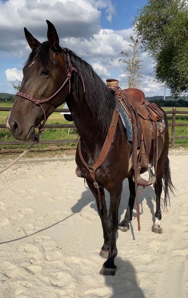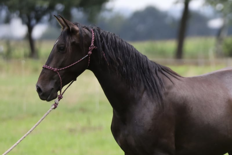 Noir est beau ! Azahara XVLI, une magnifique jument pure espagnole avec une bonne lignée, voir les papiers, élevée dans un très bon élevage sur de grandes surfaces. Expression espagnole typique, dotée de fantastiques allures, bâtiment harmonieux avec de bons sabots et une construction stable. Avec sa taille imposante d'environ 165 cm+, elle convient à l'équitation de travail exigeante, à la dressage ainsi qu'à l'équitation de loisir haut de gamme, et également en raison de sa lignée, elle est adaptée à la reproduction. Elle connaît déjà le poids du cavalier et peut rester ici pour une formation supplémentaire. Localisation : Allemagne, elle se trouve ici dans un petit troupeau et se montre très sociable. Pour un intérêt sérieux, n'hésitez pas à demander plus d'informations par message ou par téléphone !