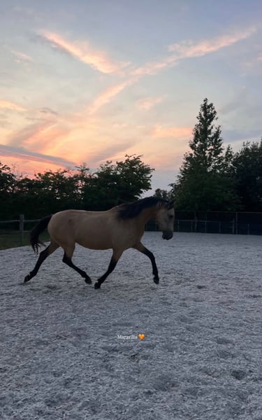 Maravilla is een dochter van dè Revoltoso van Paco Marti. Geboren in België op ons eigen erf. Heel rustig opgeleerd en alle tijd gekregen. Ben jij ene ervaren ruiter die klaar is om met haar naar het volgende niveau te stijgen? Deze prachtige merrie heeft alle gangen bevestigd en is klaar om jouw partner in succes te worden! Maravilla is een PRE met stamboom en ANCCE paspoort, inclusief Carta. Het is een echte merrie die veel leiding neemt en dus ook iemand nodig heeft die leiding kan geven. Dus niet geschikt voor de onervaren ruiter, maar zeker wel voor de ruiter die zijn of haar grenzen wil verleggen en zich verder wil ontwikkelen. 5 sterren huisje gezocht: Ze krijgt momenteel enkel het allerbeste en dat willen we ook voor haar nieuwe eigenaar! Hier leeft zij overdag in een stabiele kudde op de wei en 's nachts gaat zij op stal. Al haar ontwormingen en vaccinaties staan op punt. Keuringen zijn voor de koper. Prijs: In de prijsklasse C, enkel voor serieuze kopers; Bij interesse stuur een bericht voor meer info of om een bezichtiging in te plannen. Filmpjes onder het zadel kunnen bezorgd worden. Stokmaat 1,60 m